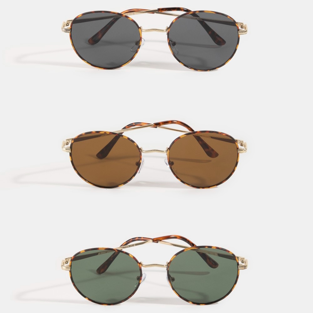 • Effortlessly stylish and always on-trend, this set of sunglasses exudes a refined metallic arms thin frame round sunglasses set design. Elevate your fashion statement with this versatile set of sunglasses, adding a touch of glamour to your everyday look. Available in ASSORTED. This item is sold in packs of 12.