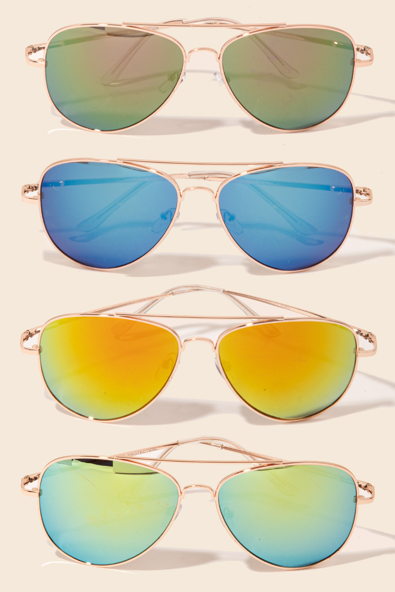 Metallic Frame Aviator Sunglasses Set