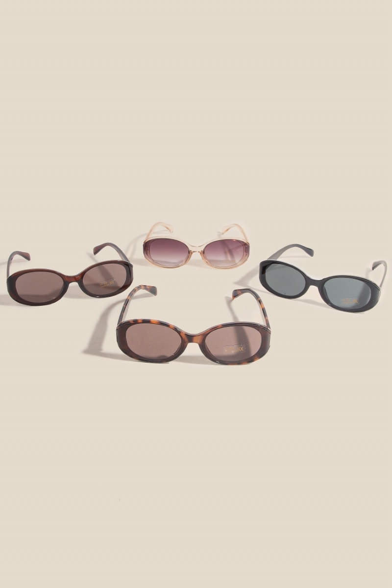 - This piece is both elegant and versatile, this set of sunglasses features a distinct narrow oval lens sunglasses set design. A stylish set of sunglasses that's perfect for complementing your favorite outfit. Available in ASSORTED. This item is sold in packs of 12.