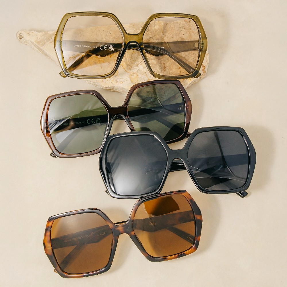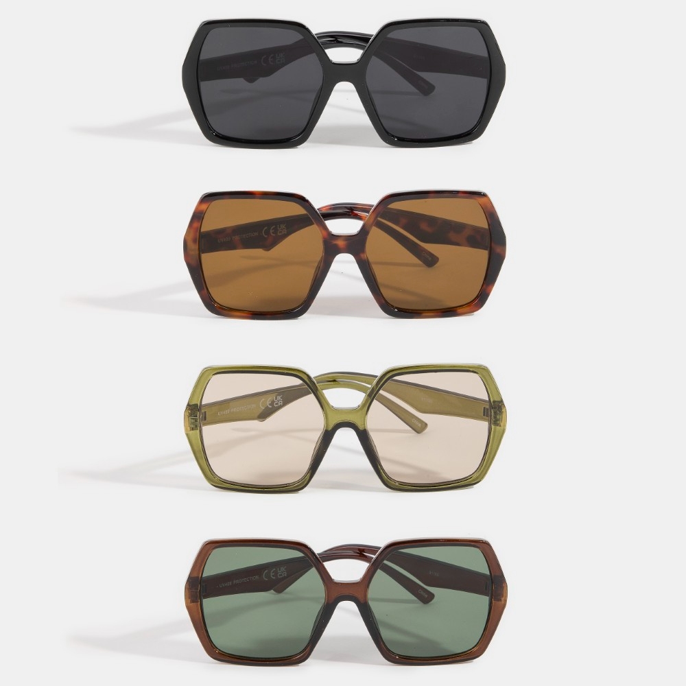 • Effortlessly stylish and always on-trend, this set of sunglasses possesses a fine oversized geometric hexagon sunglasses set design. A must-have set of sunglasses that adds a unique flair to any look. This item is sold in packs of 12.