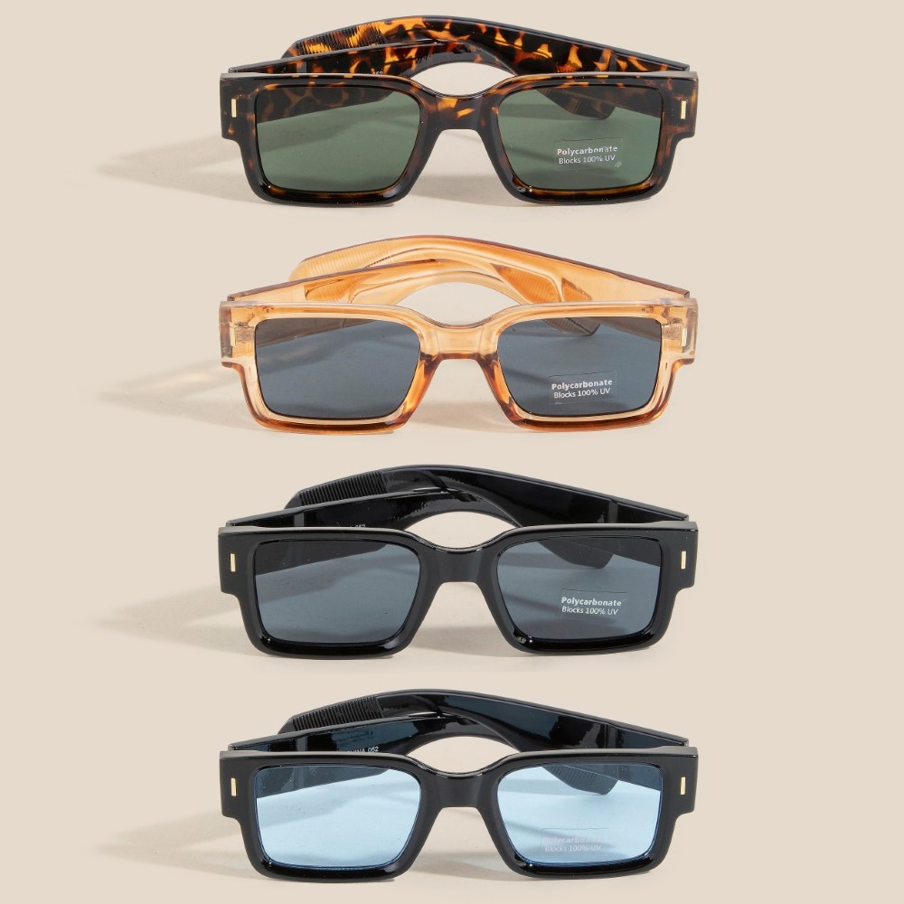 • Perfectly polished and endlessly versatile, this set of sunglasses offers a remarkable retro rectangular frame sunglasses set design. A chic and sophisticated set of sunglasses that's perfect for dressing up or down. Available in ASSORTED. This item is sold in packs of 12.