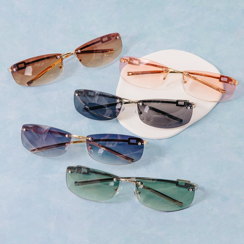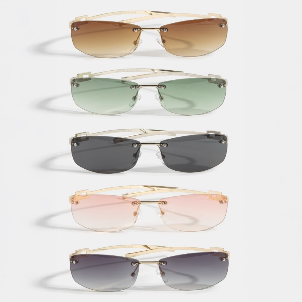 Chic, sophisticated, and always in style, this set of sunglasses features a distinct rimless wrap assorted sunglasses design. Perfect for adding some texture and dimension to any outfit, this set of sunglasses is a must-have. This item is sold in packs of 12.