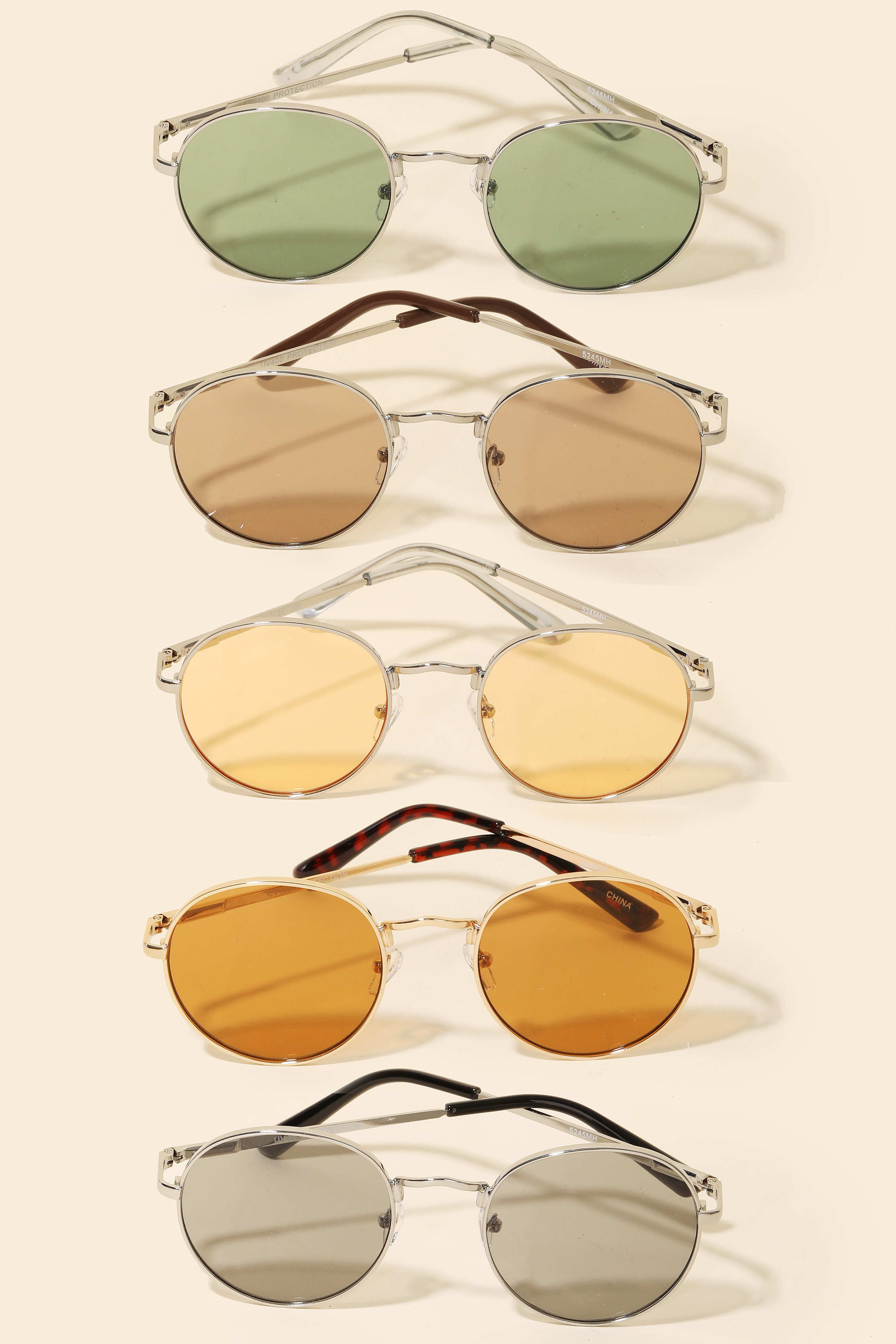 - The perfect way to add some sparkle to your outfit, this sunglasses showcases a breathtaking round lens metallic frame sunglasses set design. A must-have accessory that effortlessly enhances your style, no matter the occasion. This item is sold in packs of 12.