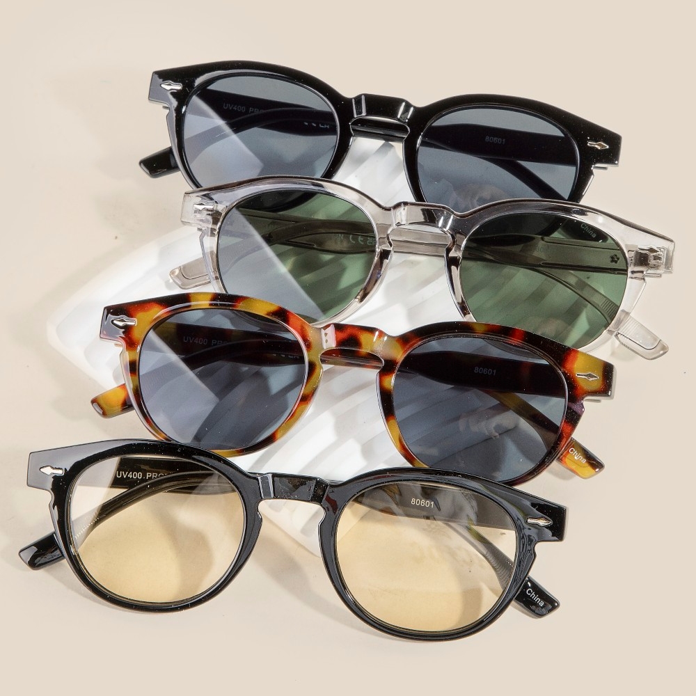 • An instant wardrobe staple, this set of sunglasses flaunts a luxurious round lens resin frame sunglasses set design. Discover a new level of fashion versatility as this set of sunglasses effortlessly elevates the allure of your attire. Available in ASSORTED. This item is sold in packs of 12.
