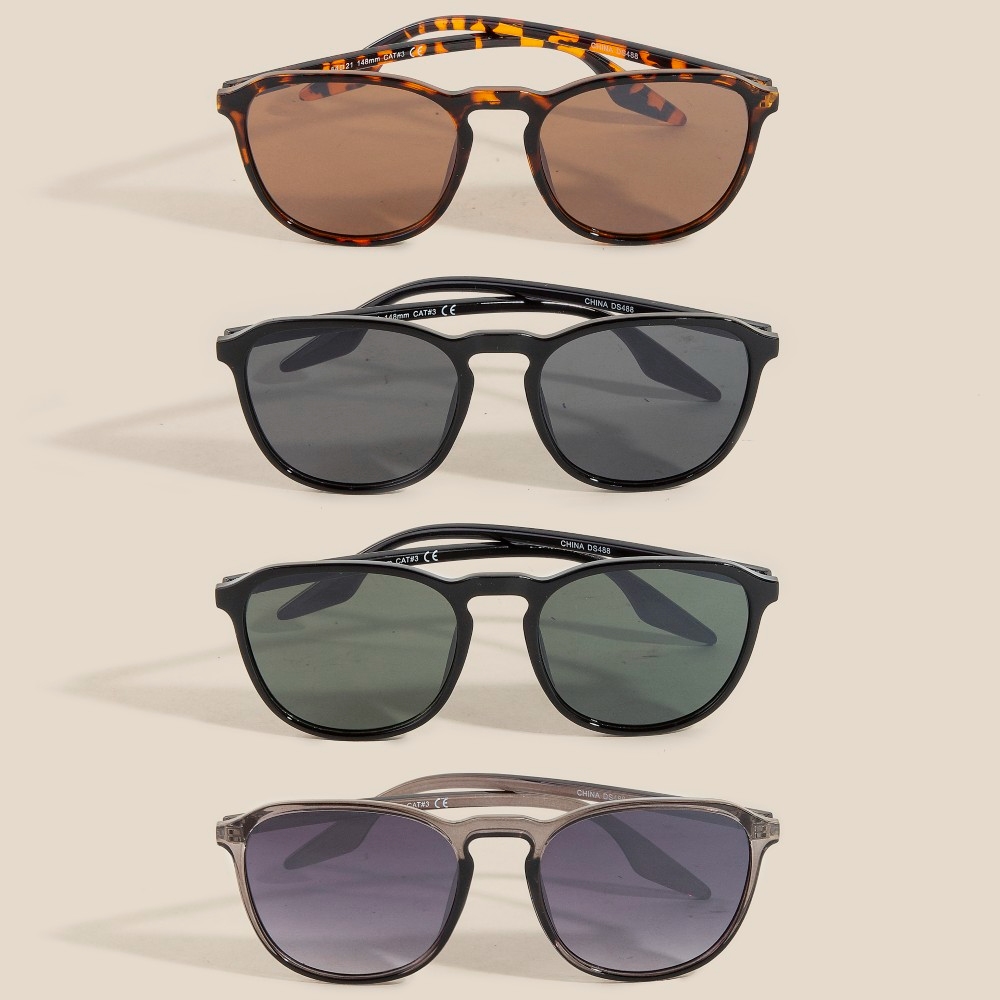 - The perfect way to add some edge to your look, this set of sunglasses radiates a sleek simple large lens sunglasses set design. Unlock endless styling possibilities with this versatile set of sunglasses, creating a signature look that speaks volumes. This item is sold in packs of 12.