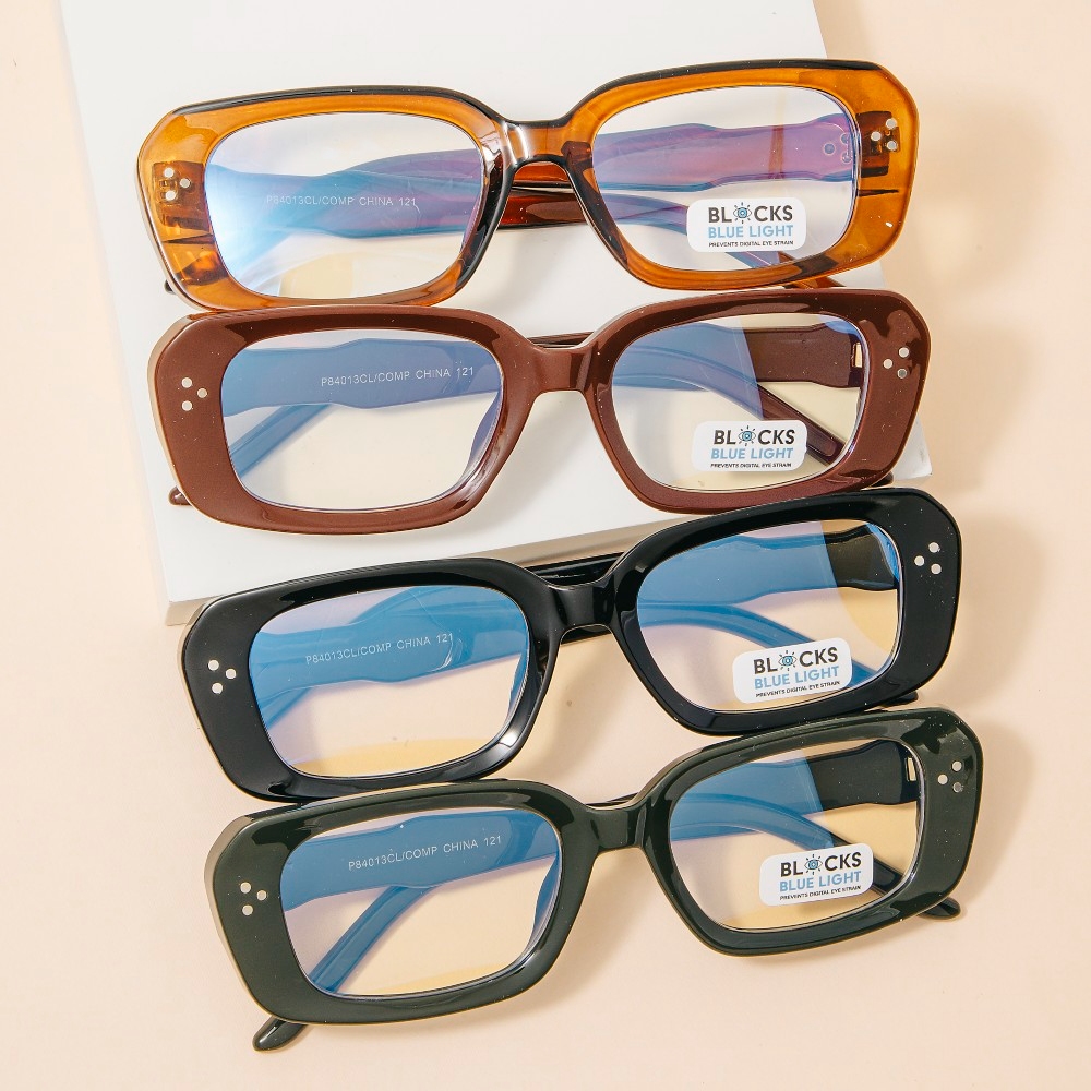 • Chic, sophisticated, and always in style, this set of sunglasses highlights a special slim rectangle blue light blocking sunglasses with bold frame design. Embrace fashion flexibility with this versatile set of sunglasses, designed to effortlessly enhance the sophistication of any outfit. This item is sold in packs of 12.