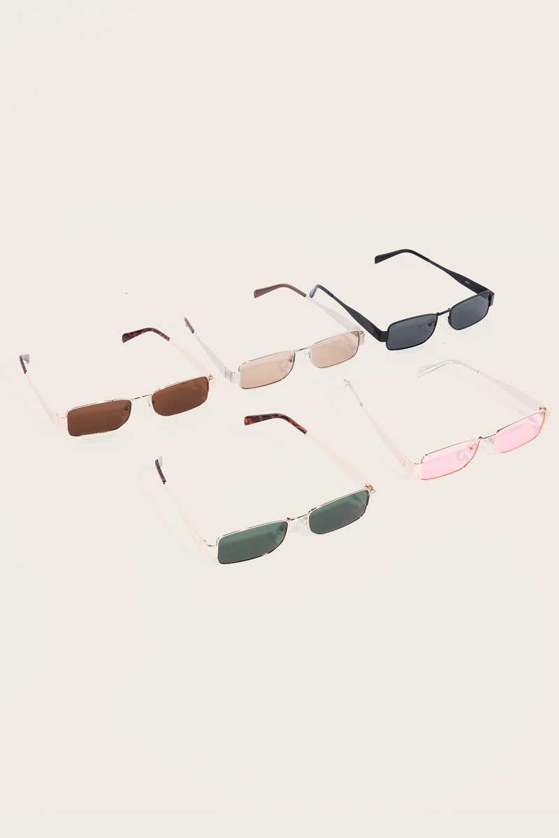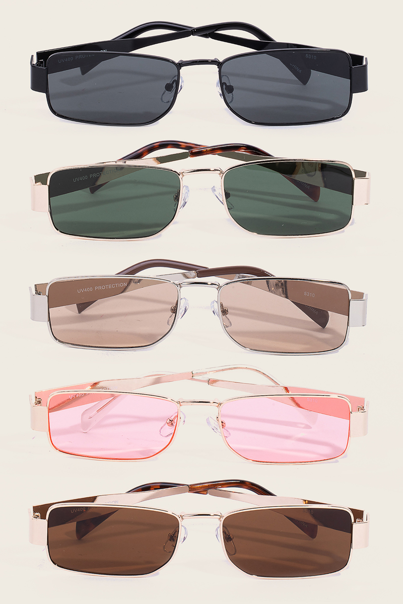 - Unleash your inner fashionista, this set of sunglasses incorporates a remarkable thin metal rectangle frame sunglasses set design. Upgrade your fashion game with this versatile set of sunglasses, a timeless addition that complements any outfit seamlessly. Available in UN. This item is sold in packs of 12.