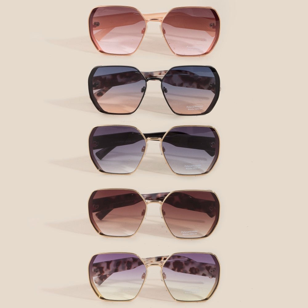 • Stay ahead of the fashion curve, this set of sunglasses adds a distinctive thin metallic frame large lens sunglasses set design. This set of sunglasses is the perfect finishing touch to any outfit, adding a touch of sophistication and glamour. Available in APMC. This item is sold in packs of 12.