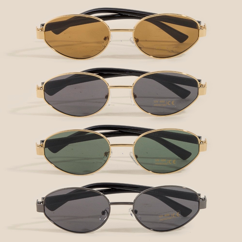 This piece is the epitome of sophistication and elegance, this set of sunglasses reveals an intricate twelve piece assorted oval metallic frame sunglasses design. Experience the transformative power of this versatile set of sunglasses, effortlessly enhancing the overall aesthetic of your outfit. This item is sold in packs of 12.