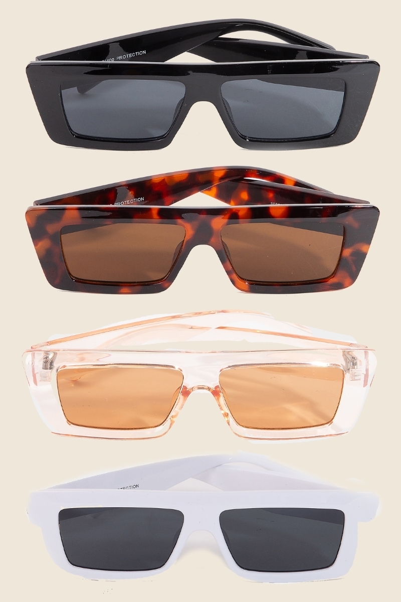 • A versatile and stylish addition to any wardrobe, this set of sunglasses showcases an alluring thick geometric frame sunglasses set design. Redefine your fashion identity with this versatile set of sunglasses, a timeless piece that complements any wardrobe. This item is sold in packs of 12.