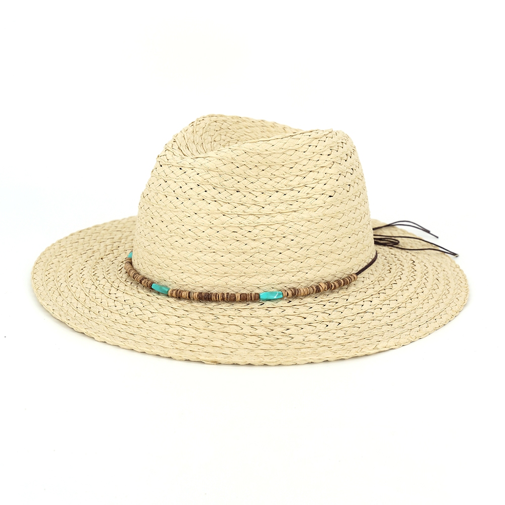 • This piece is both timeless and on-trend, this straw hat offers a remarkable turquoise wood bead band natural design. A perfect addition to your wardrobe that effortlessly enhances your style. Available in BE, TP. This item is sold in packs of 1.