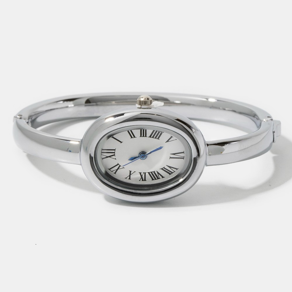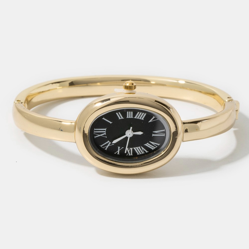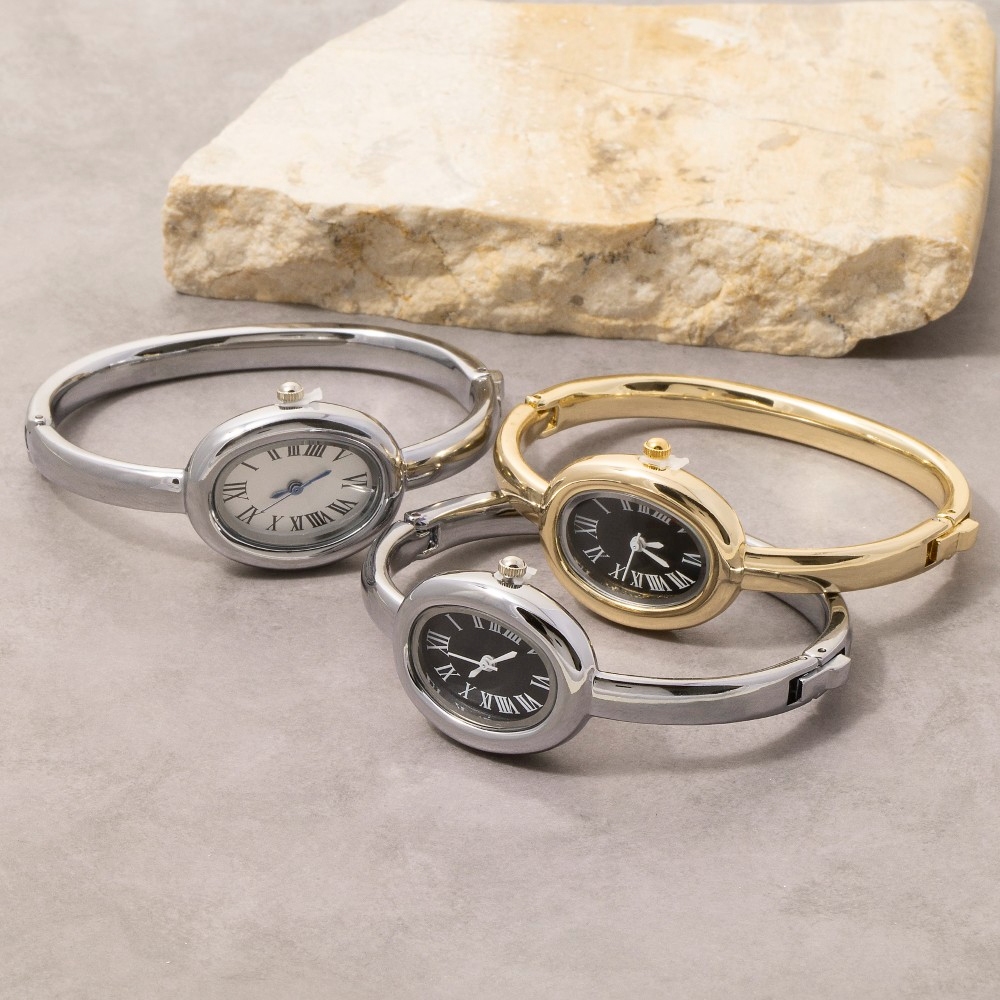 - A bold and daring choice that is sure to impress, this bracelet incorporates a flawless hinged oval bangle watch design. Achieve a perfect blend of style and sophistication with this versatile bracelet, a fashion-forward choice for any occasion. Available in GBK, SBK, SWH. This item is sold in packs of 1.