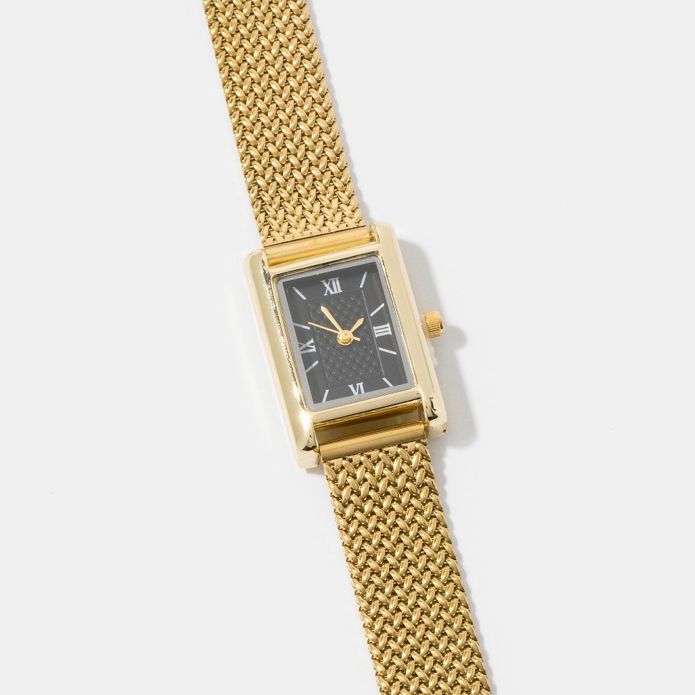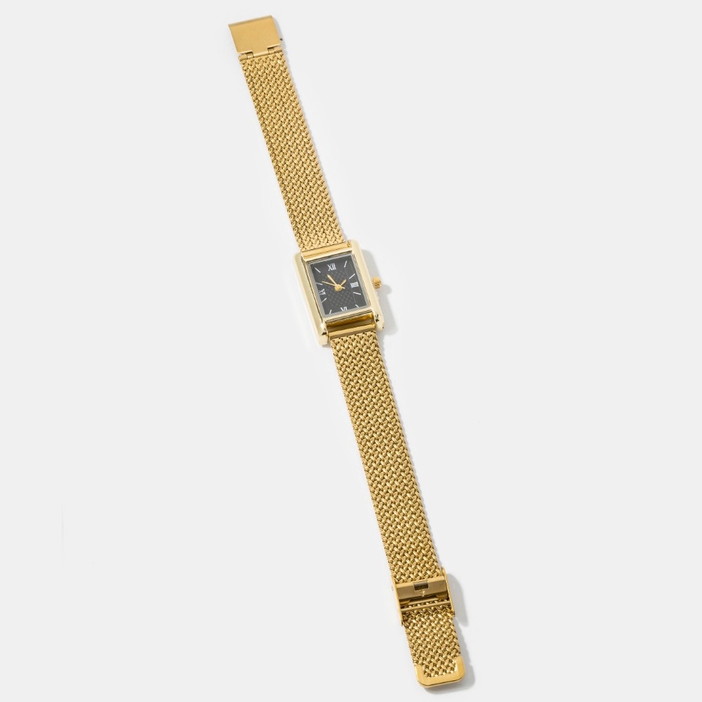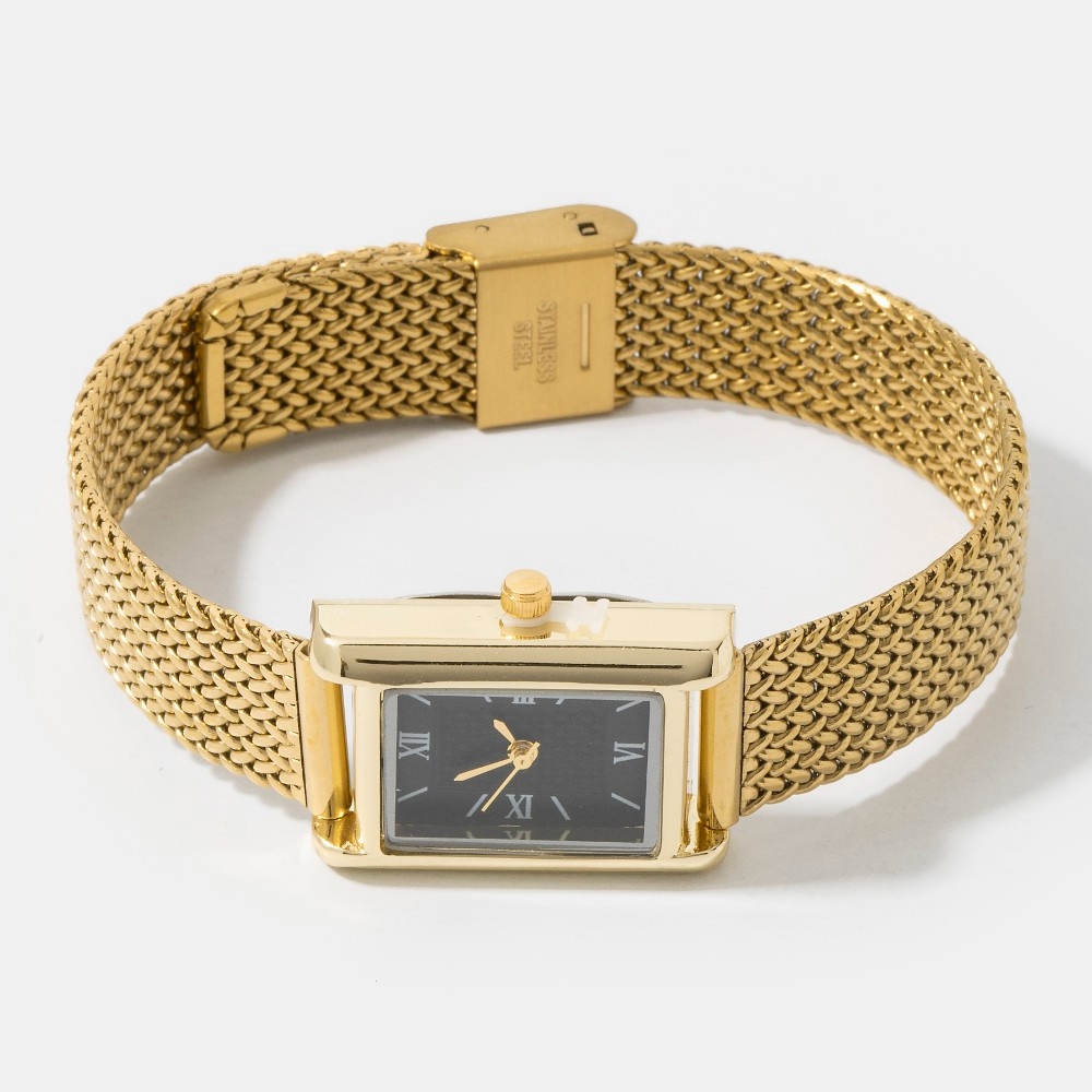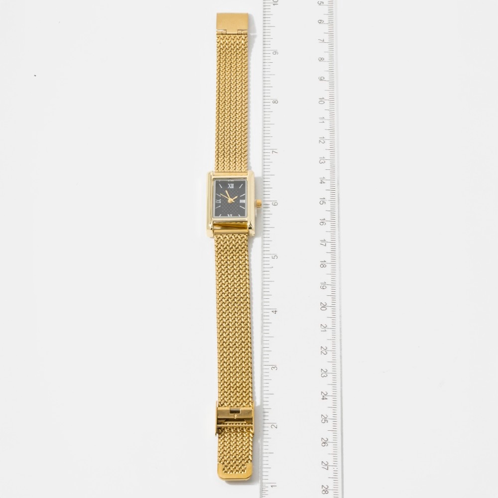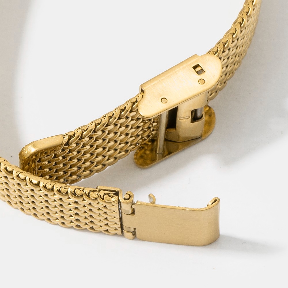 • Bold, daring, and endlessly stylish, this bangle bracelet includes a stunning woven metallic mesh band rectangle watch design. The perfect way to elevate any outfit, this bangle bracelet adds a touch of elegance and style. Available in GBK, SBK, SWH. This item is sold in packs of 1.
