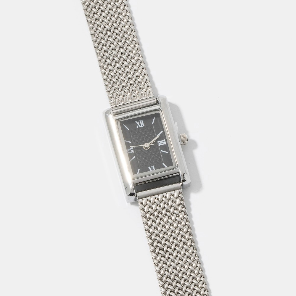 Ribbed Cushion Metallic Band Minimalist Rectangle Watch