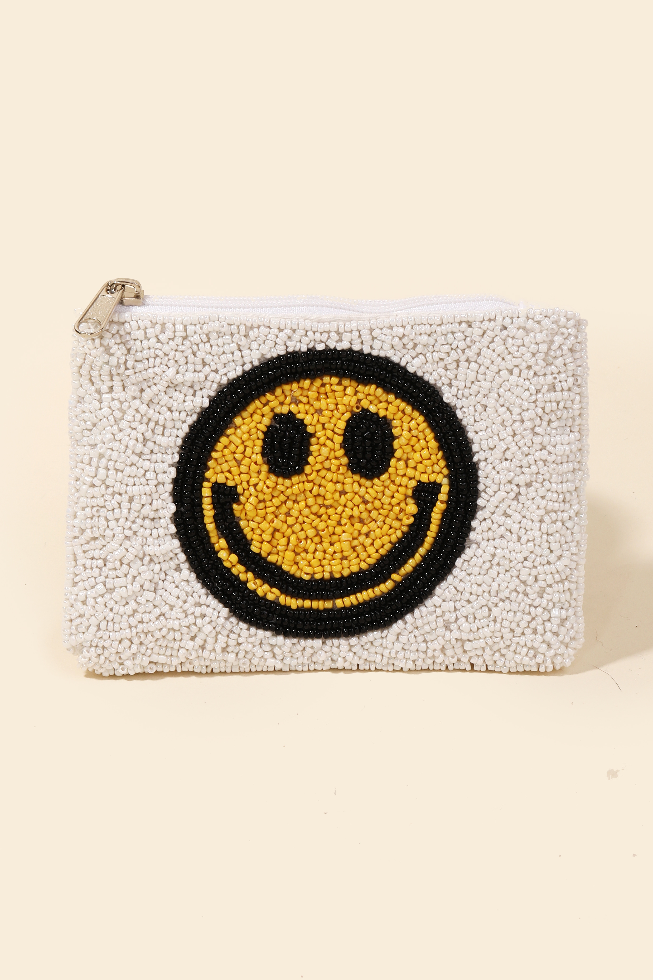 - A stunning addition to any jewelry collection, this bag possesses a fine white seed beaded smiley face coin purse design. A must-have accessory for anyone who loves to add some flair to their outfits. Available in Multi. This item is sold in packs of 2.