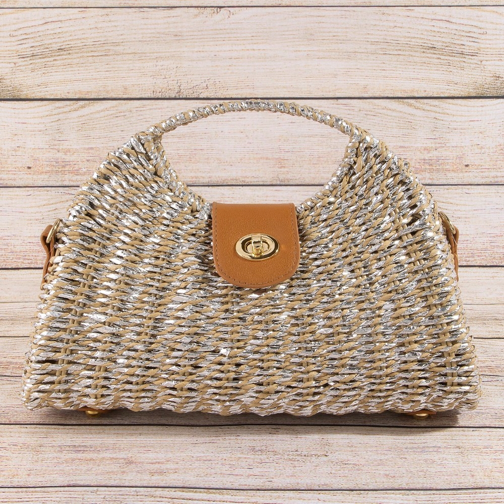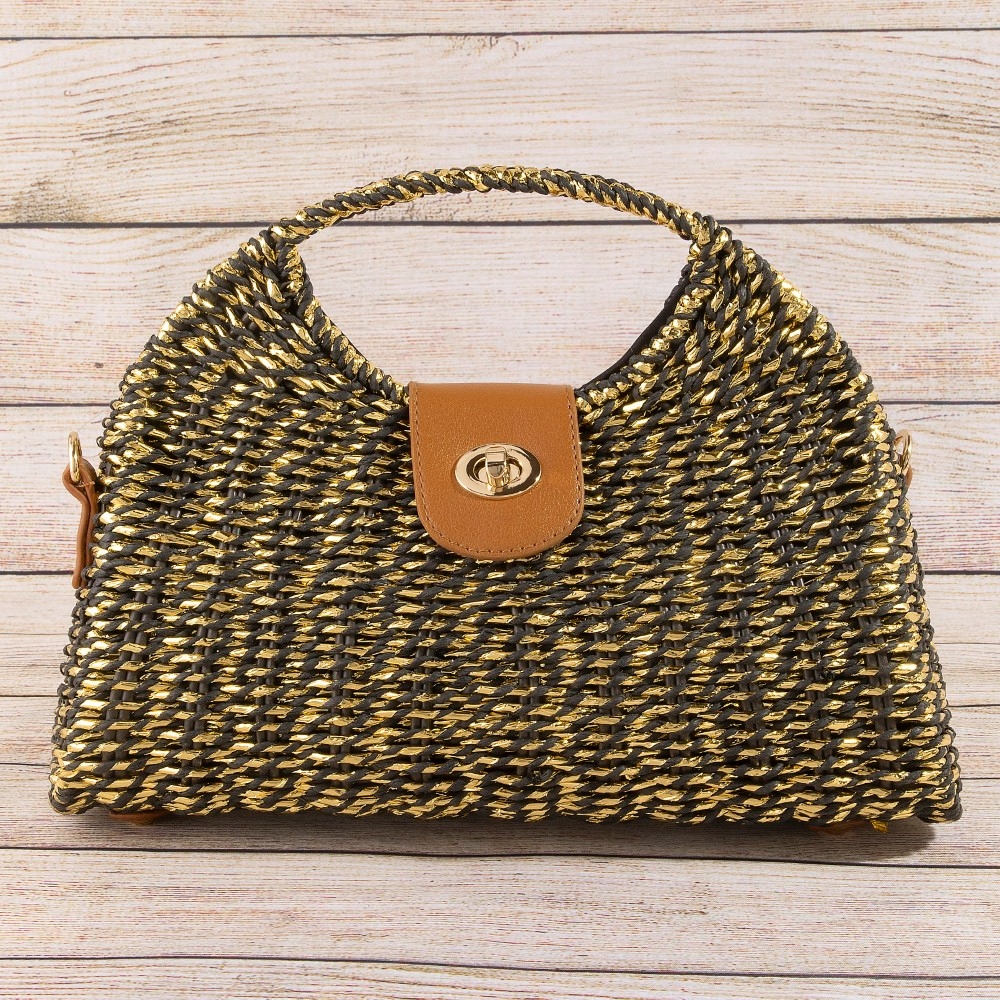 • Effortlessly chic and sophisticated, this hand bag displays a unique woven straw top handle handbag design. The perfect way to elevate any outfit, this hand bag adds a touch of elegance and style. Available in B, BEI, BL, GR, KH, W. This item is sold in packs of 1.