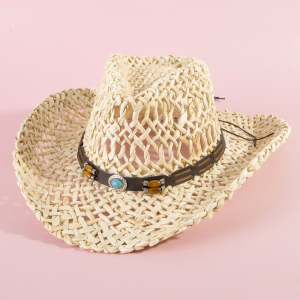 Adjustable Chin Strap Straw Braid Cowboy Hat