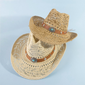 Straw Braided Hamsa Hand Western Cowboy Hat