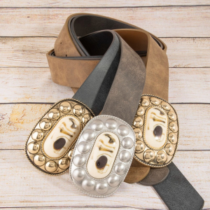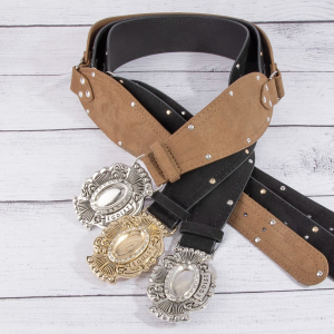 Vegan Leather Black And Leopard Embroidered Buckle Belt Set