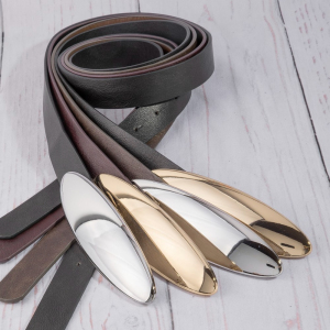 Vegan Leather Oval Long Plate Buckle Belt