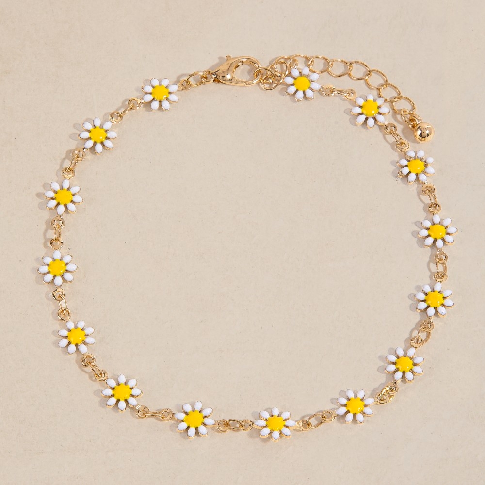 Uniquely designed and endlessly stylish, this anklet encompasses a grand enamel daisy flower station chain design. This anklet is ideal for both casual and formal events, adding a touch of sophistication to any outfit. Available in WHG. This item is sold in packs of 1.