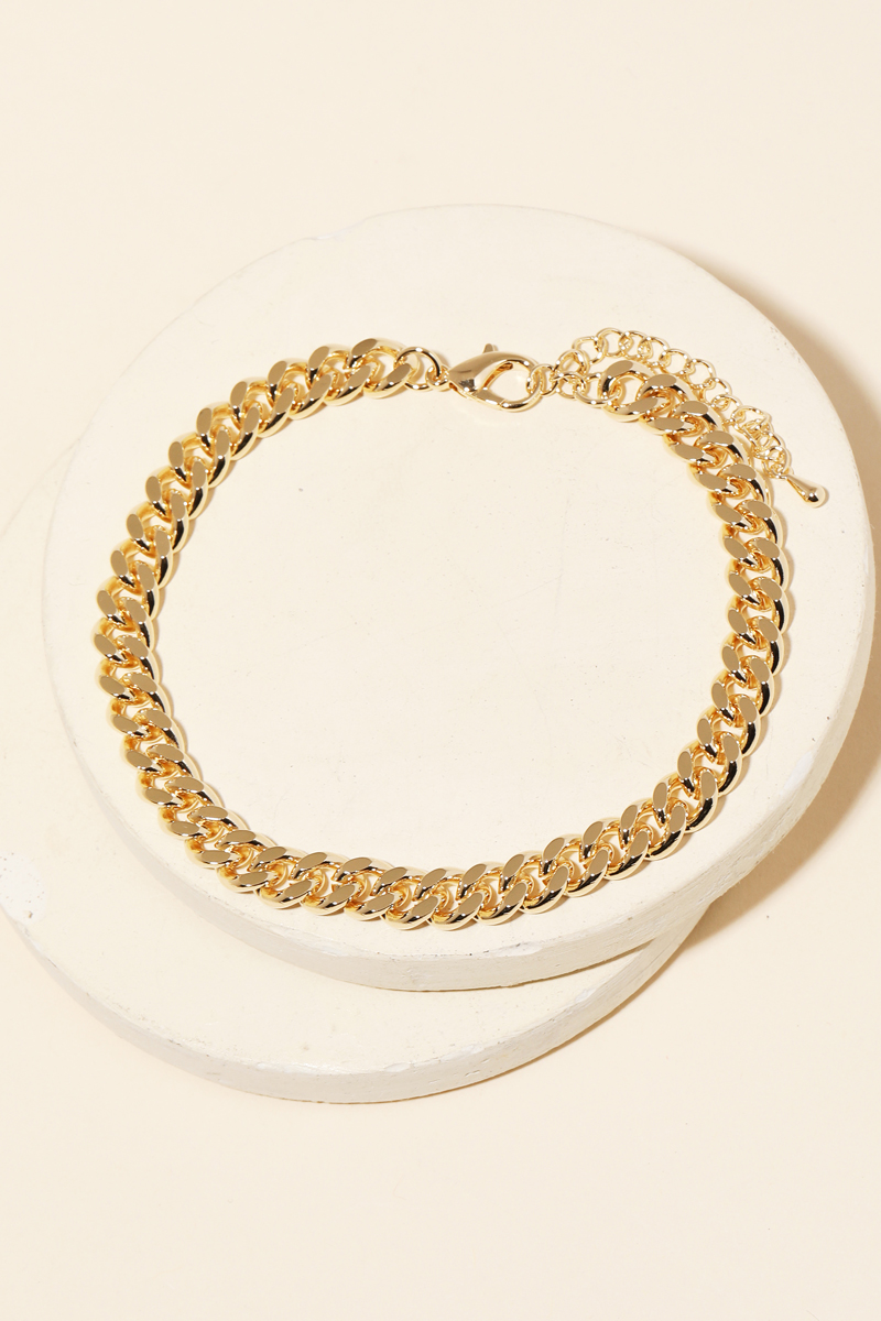 A classic design with a contemporary twist, this anklet evokes a captivating metal curb chain design. Elevate your fashion IQ with this versatile anklet, designed to seamlessly integrate into any style profile. Available in G, S. This item is sold in packs of 1.