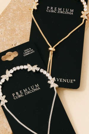 Cubic Zirconia Butterfy Charms Cord Bracelet