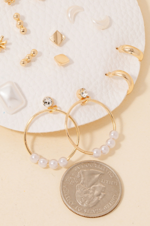 Mixed Pearl And Metallic Stud Earrings Set