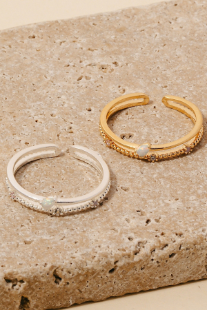 Opal And Mini Cz Studs Layered Open Band Ring
