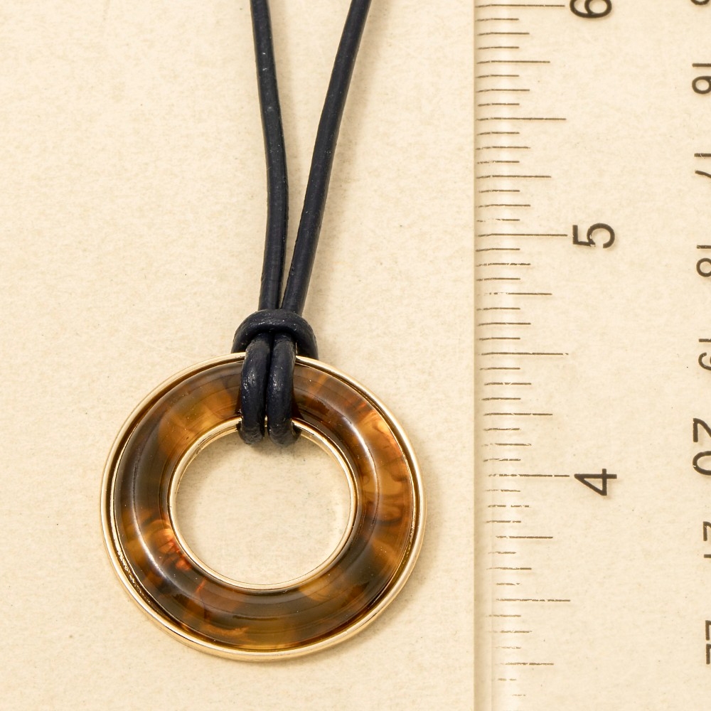 The perfect way to add some sparkle to your outfit, this necklace emanates an elegant acetate and metallic hoop pendant cord design. Unleash the charm of this versatile necklace, effortlessly turning any outfit into a fashion statement. Available in GDBRW. This item is sold in packs of 1.