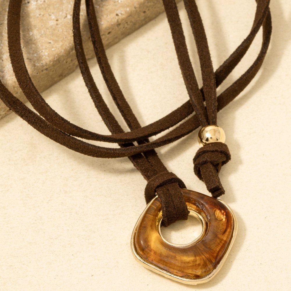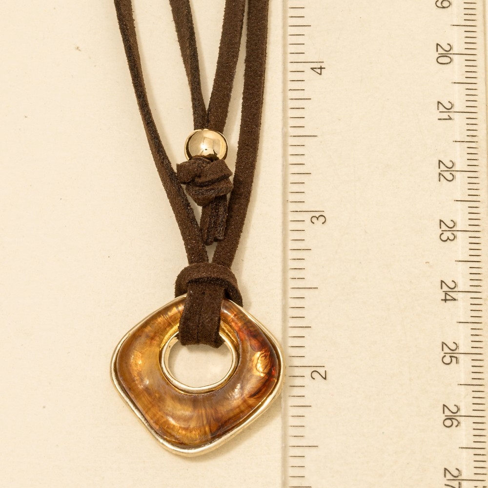 • The perfect way to add some sparkle to your outfit, this necklace exudes a refined acrylic pendant faux suede cord design. Perfect for dressing up or down, this versatile necklace adds a touch of sophistication to any look. This item is sold in packs of 1.