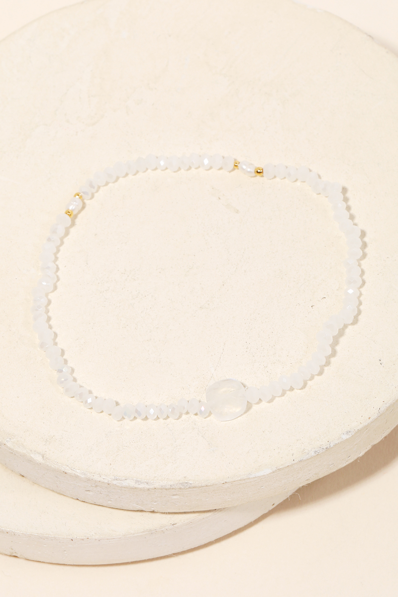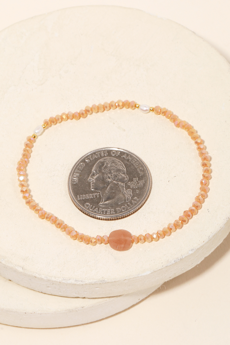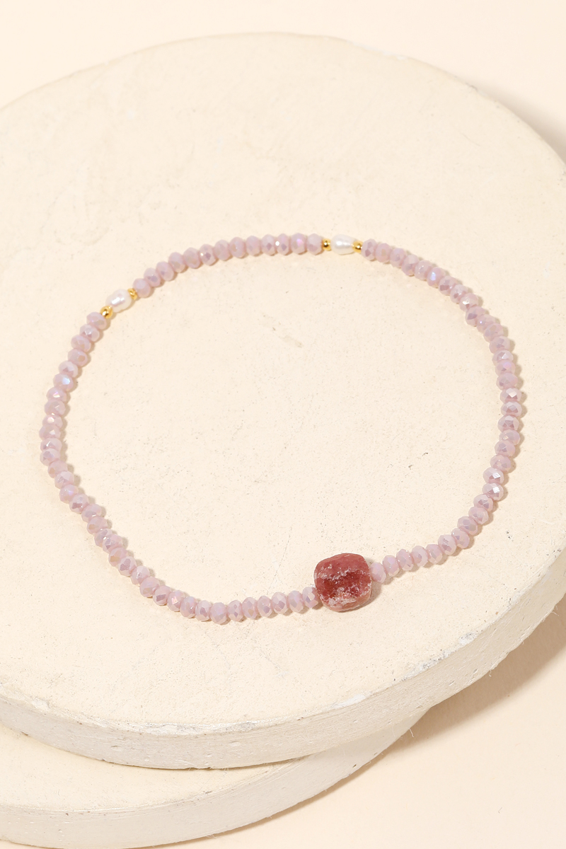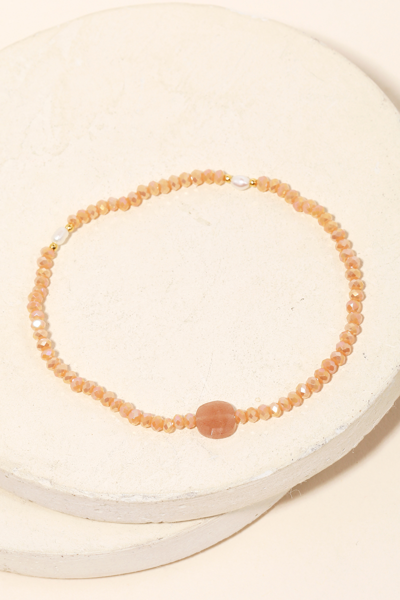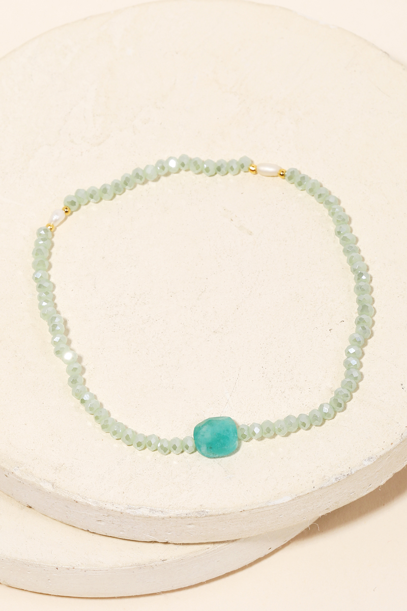 • A popular trending bracelet made into a beautiful beaded square crystal charm bracelet design. A stunning must have for the Spring season! Available in GN, GR, PE, PK and WH. This item is sold in packs of 1.