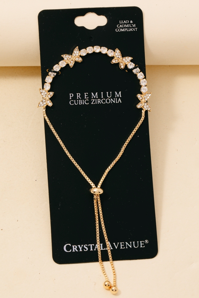 This piece is perfect for those who want to showcase their unique style, this bracelet introduces an exceptional cubic zirconia butterfy charms cord design. The perfect way to complete any outfit, whether you're dressing up or keeping it casual. Available in G, S. This item is sold in packs of 1.