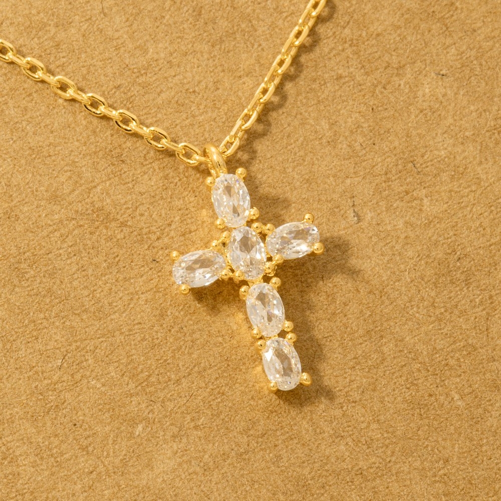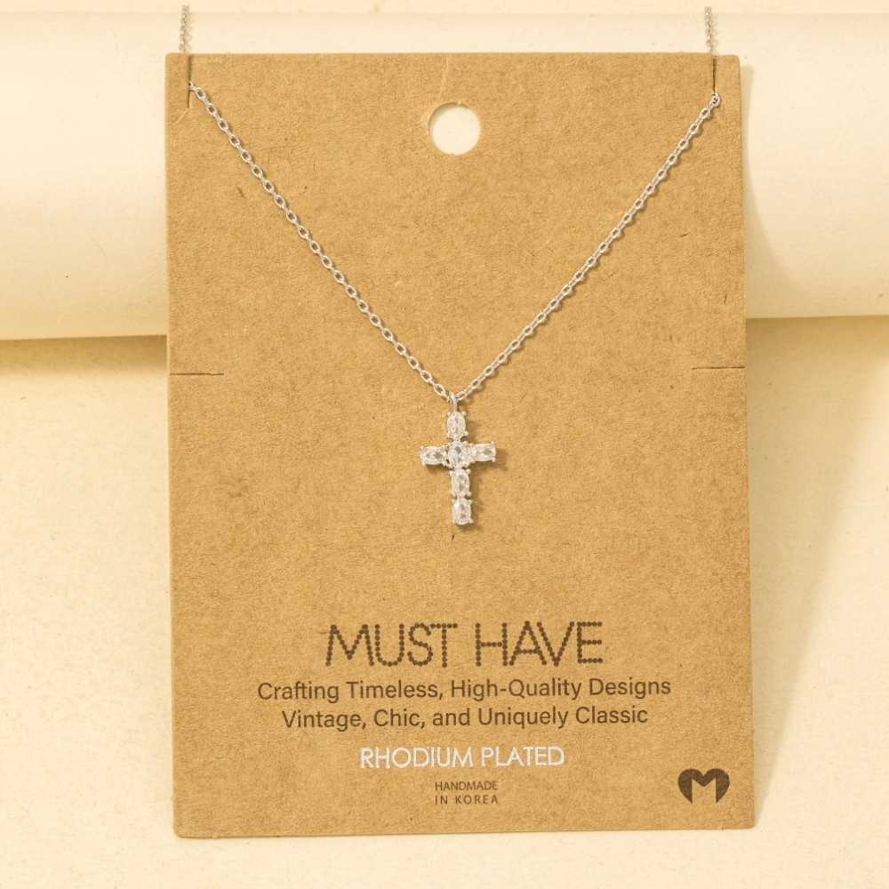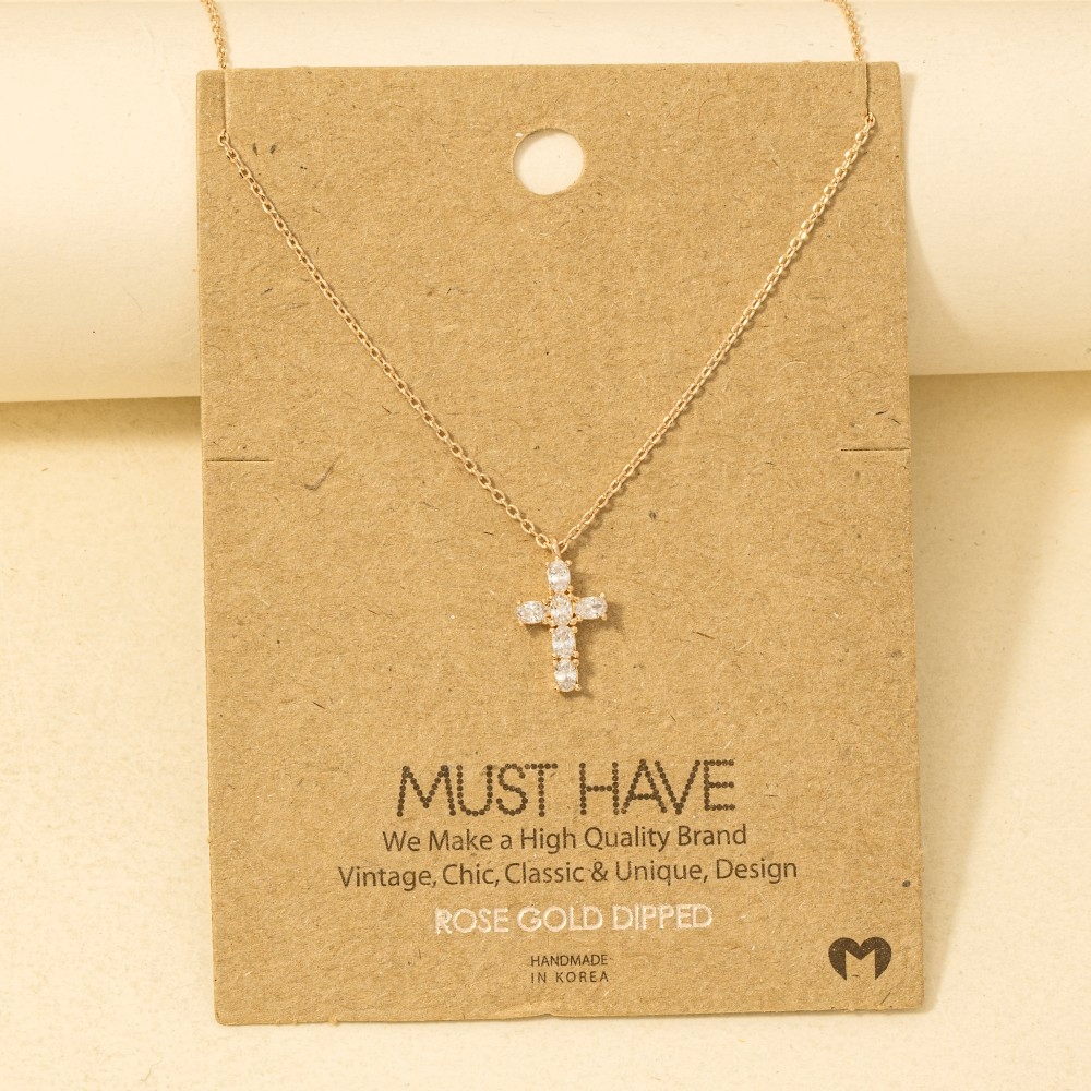 A classic design with a modern twist, this trending necklace showcases an alluring cz cross pendant necklace design. Infuse elegance into your daily wardrobe with the versatile charm of this must-have trending necklace. Available in G, R, S. This item is sold in packs of 1.