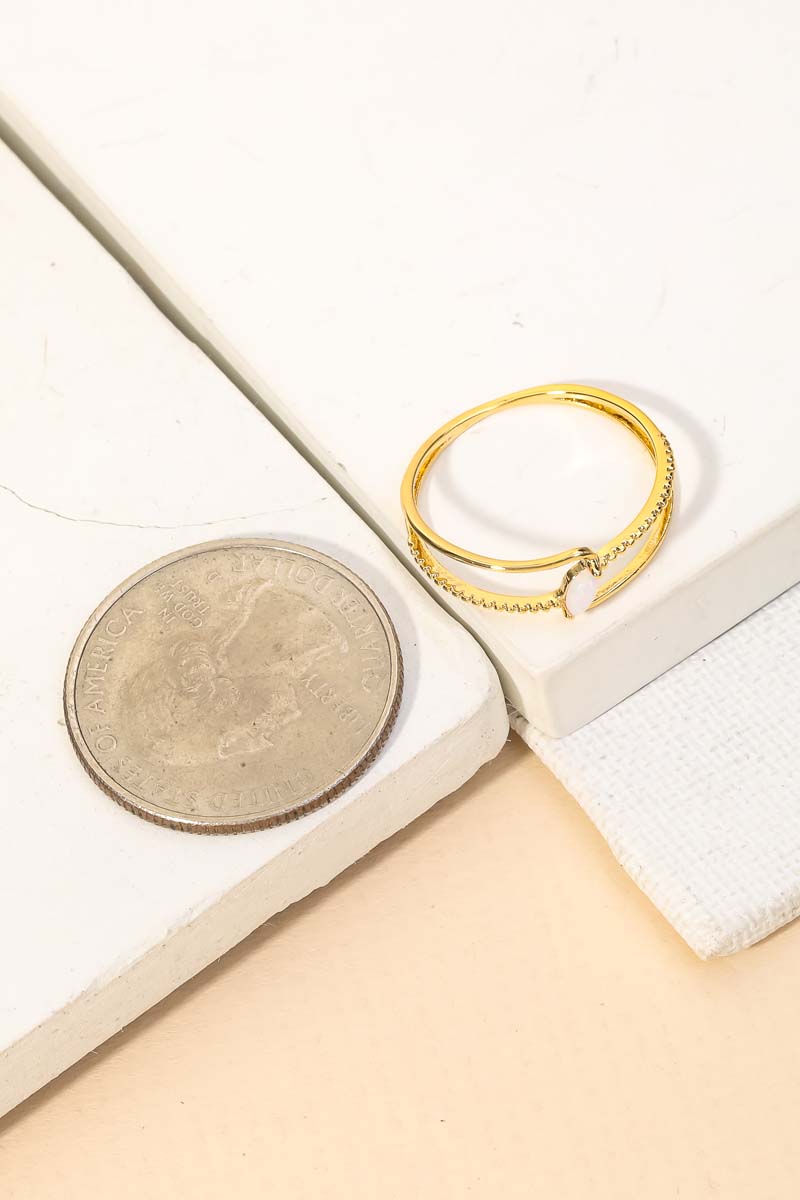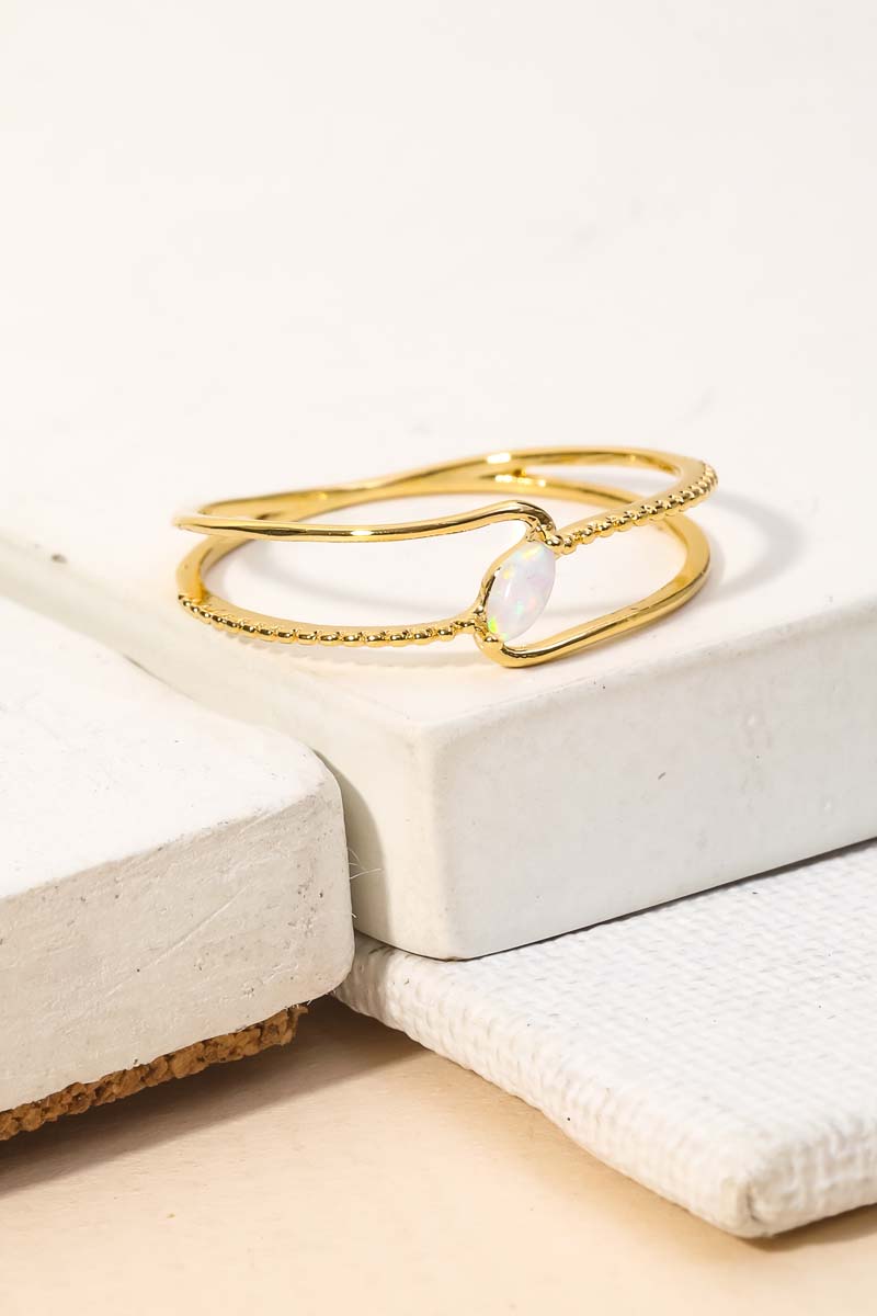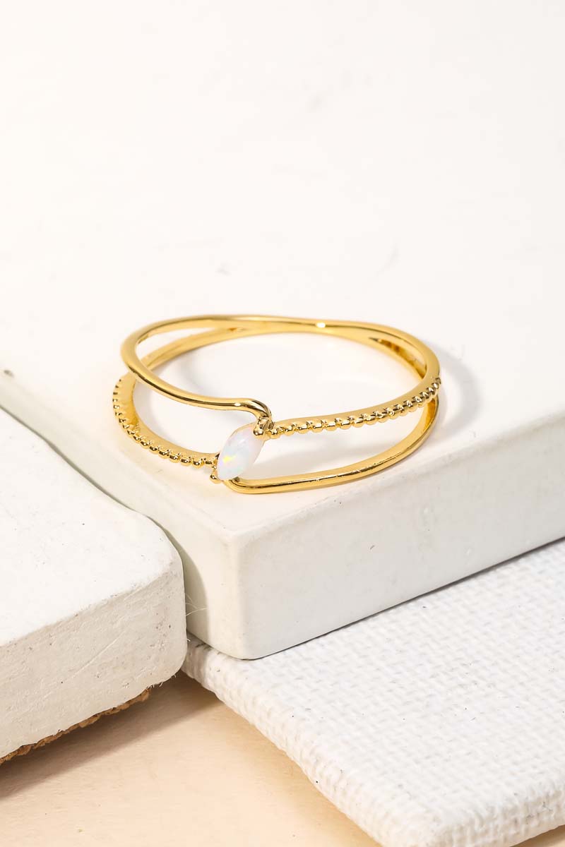 - This is a must have trending ring is made into a delicate double band opal ring design. A must have in season accessory for this Spring season! Available in G and S. This item is sold in packs of 1.