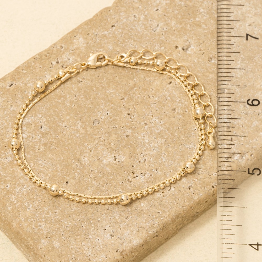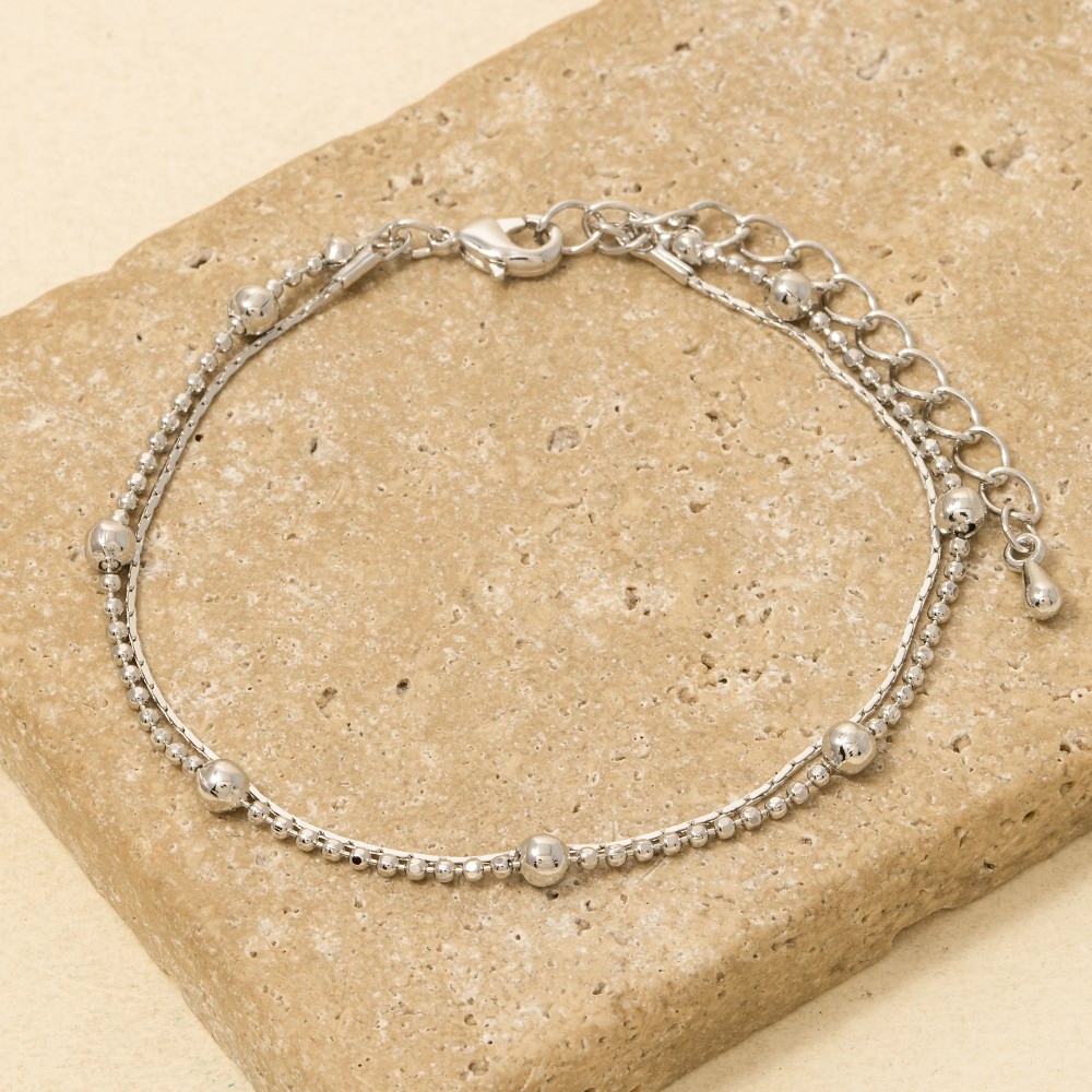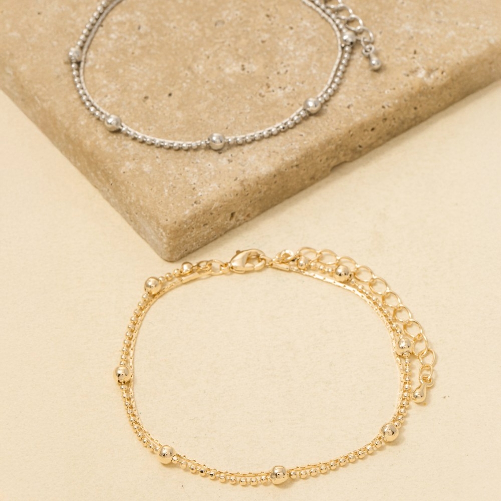 • The perfect way to add some sparkle to your outfit, this chain bracelet encompasses a grand double row ball bead and design. This versatile chain bracelet adds a touch of elegance to any outfit. This item is sold in packs of 1.