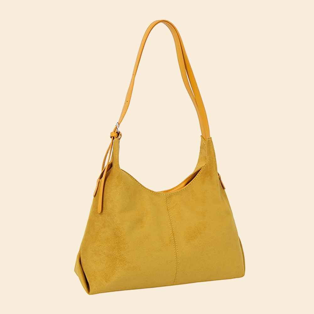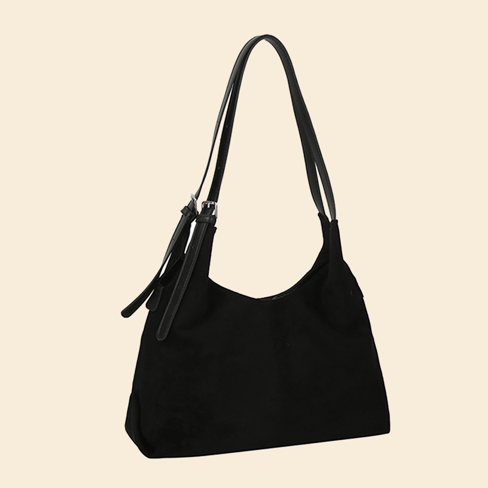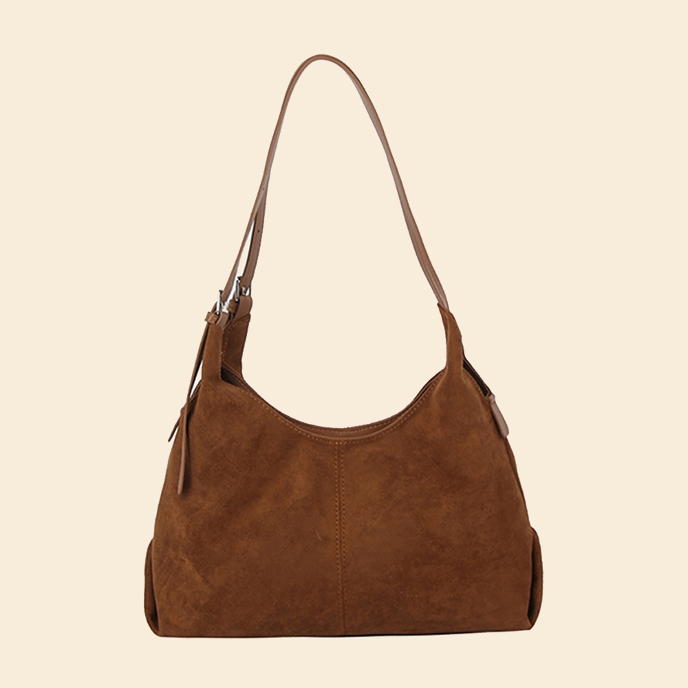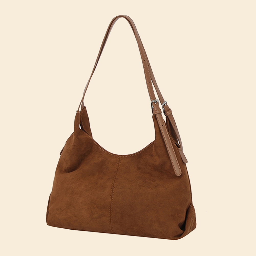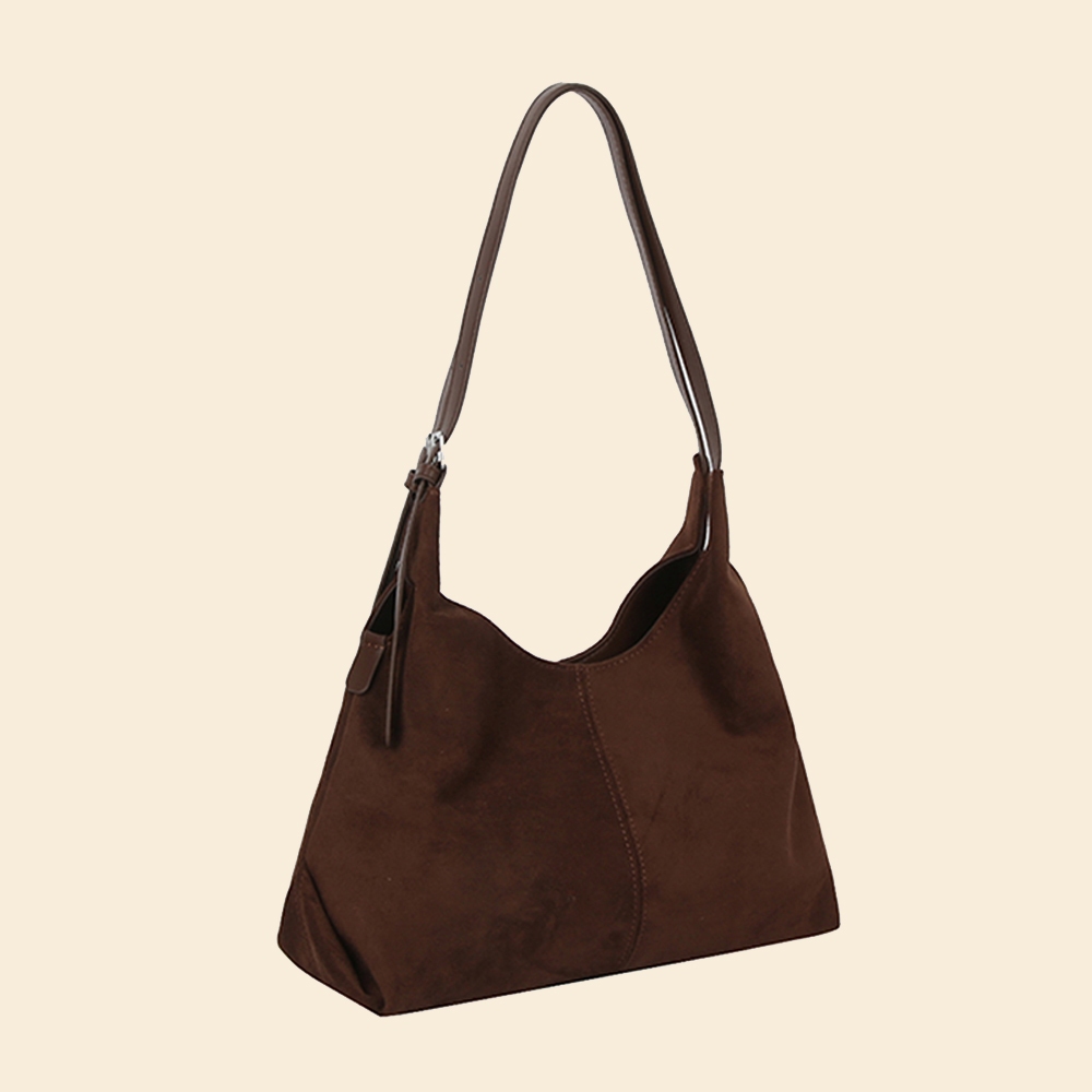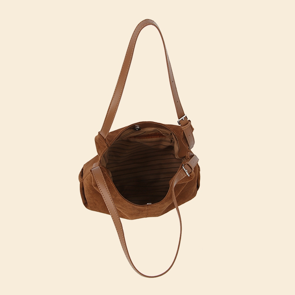 • This shoulder bag is made with 100% Faux Suede.