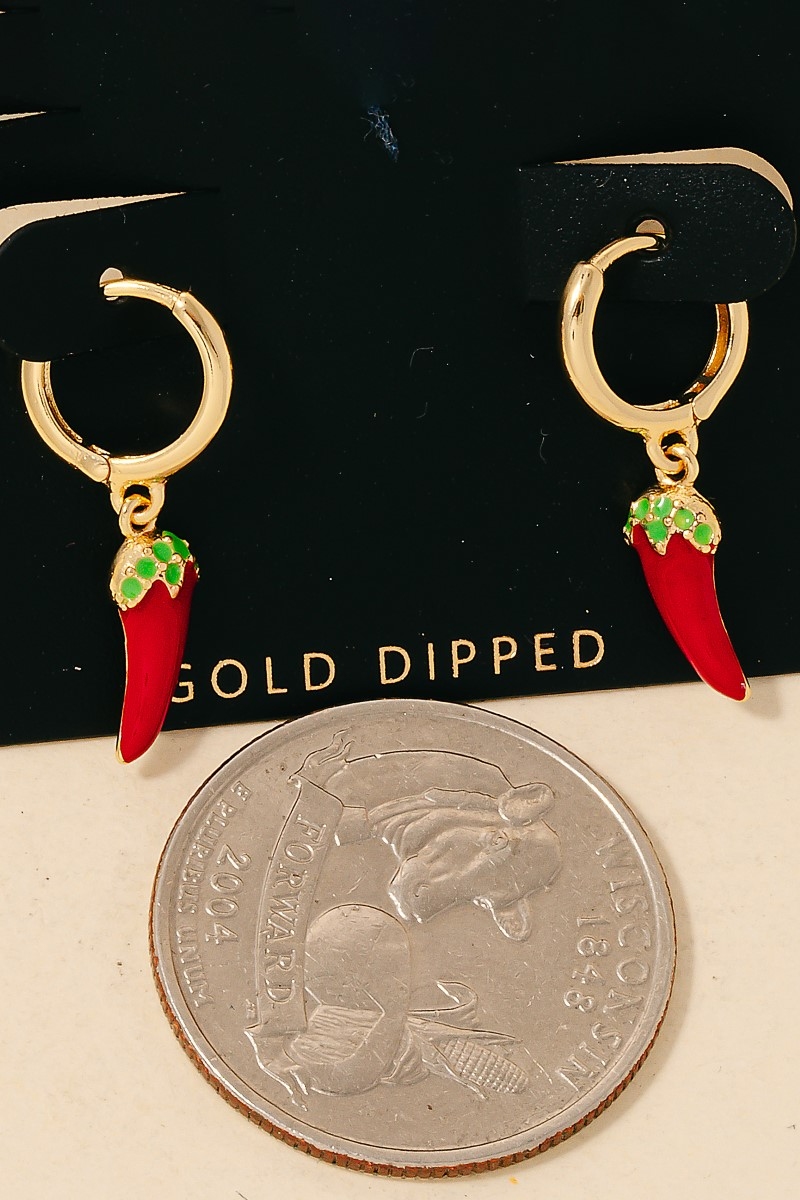 The perfect way to showcase your unique style, this pair of hoop earrings encompasses a grand gold dipped epoxy red chili pepper charm design. Perfect for dressing up or down, this versatile pair of hoop earrings adds a touch of sophistication to any look. This item is sold in packs of 1.