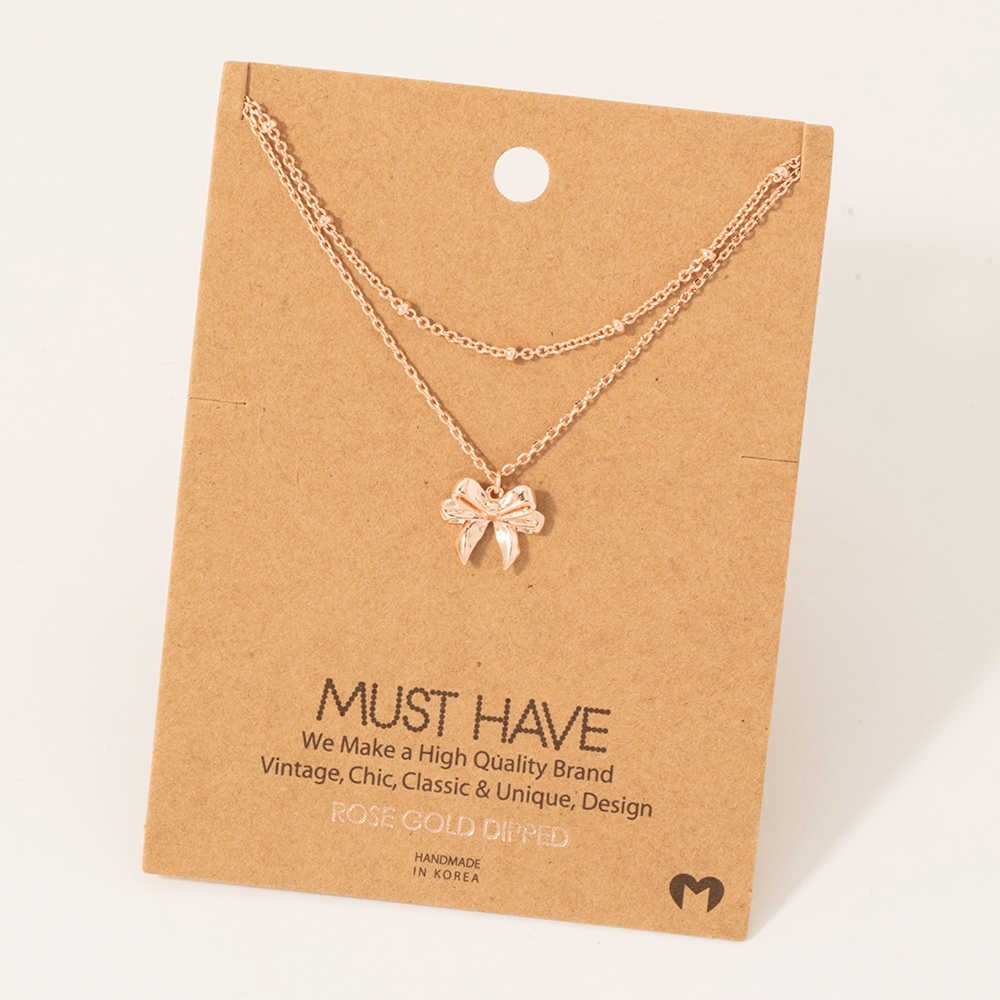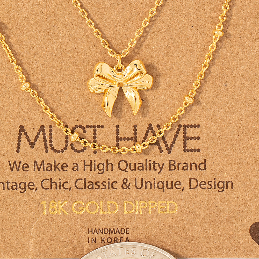 • A versatile piece that can be dressed up or down, this trending necklace comes with a special gold dipped knotted ribbon pendant necklace design. Embrace fashion flexibility with this versatile trending necklace, designed to effortlessly enhance the sophistication of any outfit. Available in G, R and S. This item is sold in packs of 1.