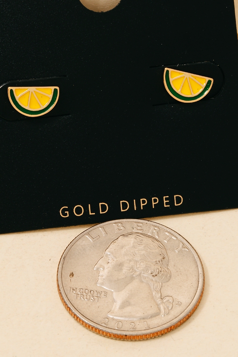 The epitome of sophistication and style, this pair of stud earrings introduces an exceptional gold dipped lime design. Unleash the power of style with this versatile pair of stud earrings, perfect for enhancing the charm of your wardrobe. Available in GOLD. This item is sold in packs of 1.