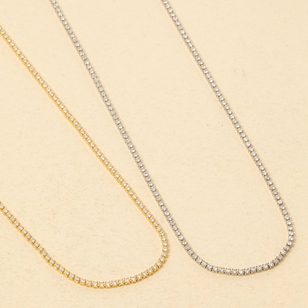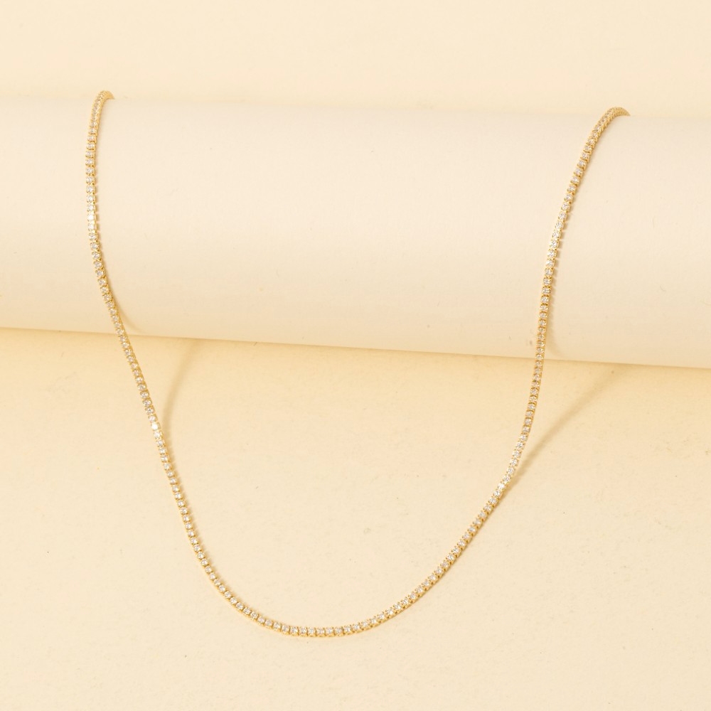 • This piece is a true showstopper, this chain necklace showcases an alluring gold dipped mini cubic zirconia tennis design. Perfect for adding some personality and flair to your wardrobe, this chain necklace is a must-have. Available in 2. This item is sold in packs of 1.