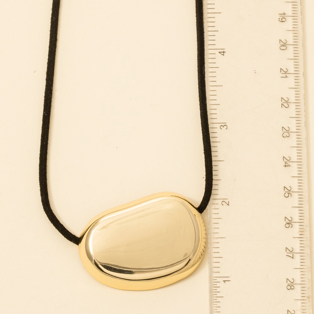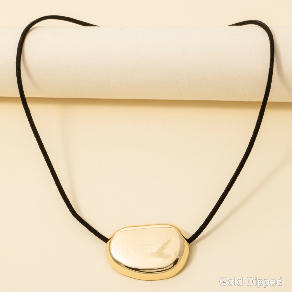 - A classic design with a modern twist, this necklace radiates a sleek gold dipped oval pendant corded design. Transform your outfit from ordinary to extraordinary with the touch of elegance provided by this versatile necklace. Available in BROWN, 2 and BLK. This item is sold in packs of 1.