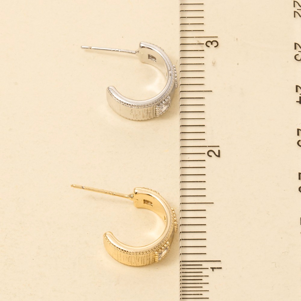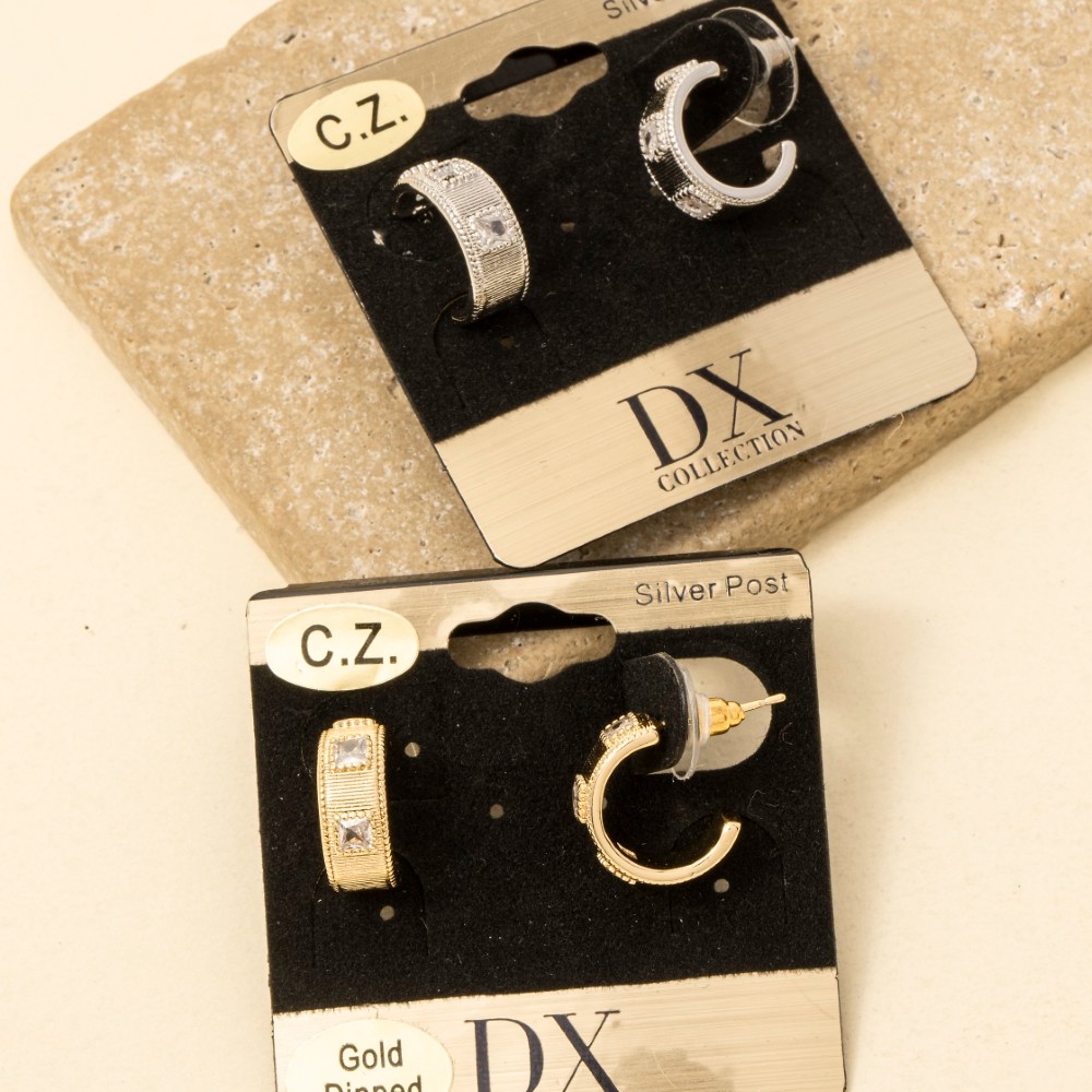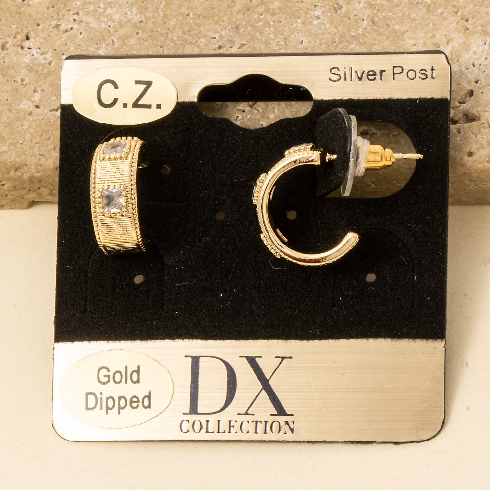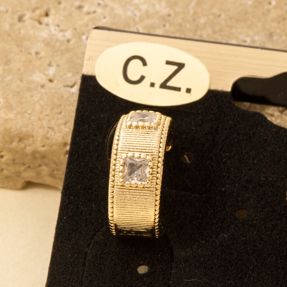 - Make a statement, this pair of hoop earrings brings a one-of-a-kind gold dipped square cubic zirconia wide design. This item is ideal for those who want to add some personality to their outfits without being too bold. Available in G, X. This item is sold in packs of 1.