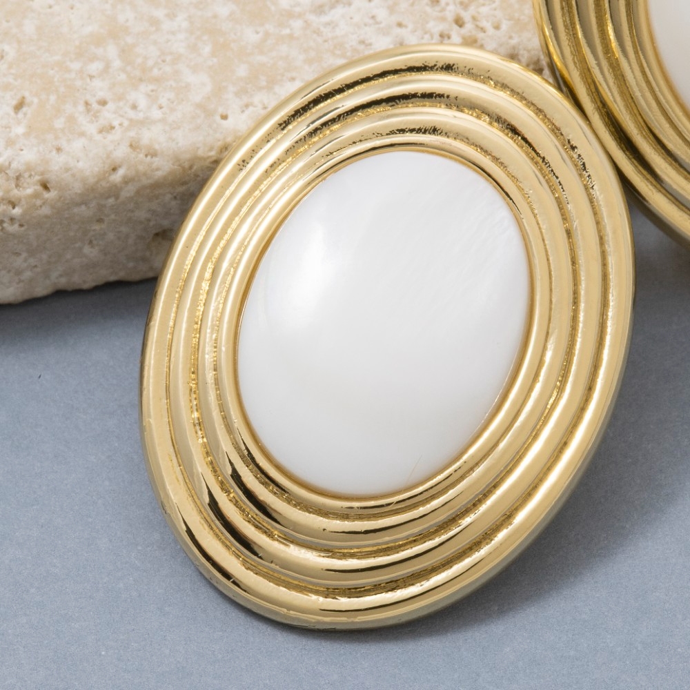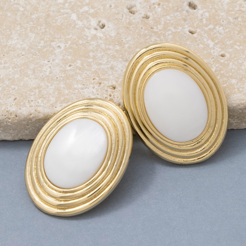 • A bold and daring choice that is sure to impress, this pair of pearl stud earrings incorporates a remarkable gold dipped vintage style oval design. Add a dash of sophistication to your look with this versatile pair of stud earrings, a must-have for fashion enthusiasts. Available in GOLD. This item is sold in packs of 1.