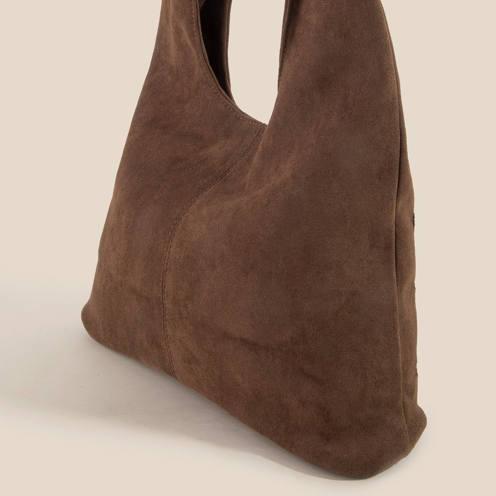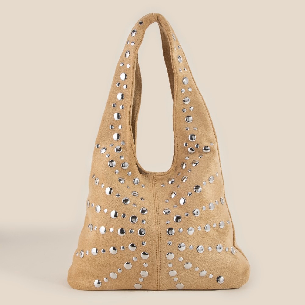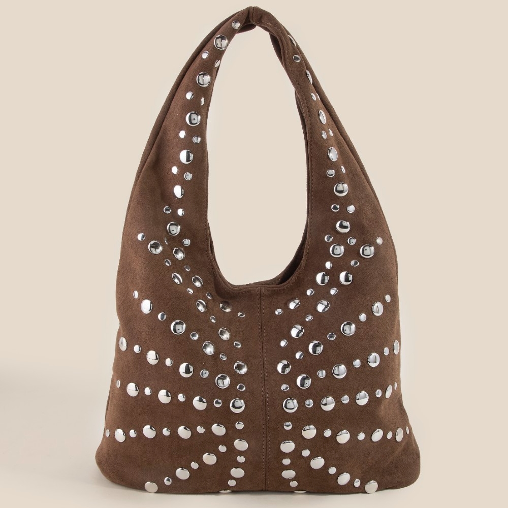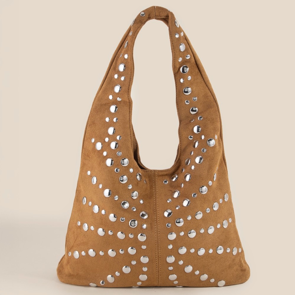 • Effortlessly chic and always on-trend, this shoulder bag encompasses a grand grommet studded suede design. This shoulder bag is a great way to add some glamour and sophistication to your outfit. Available in BK, DBR, KA, LBR. This item is sold in packs of 1.