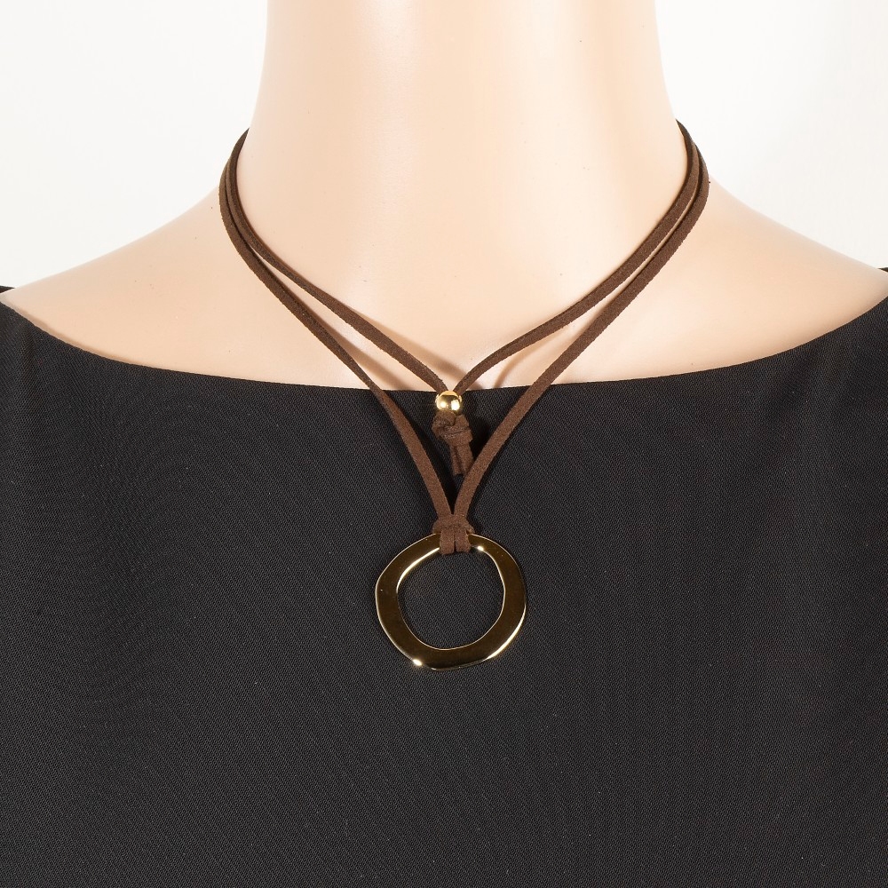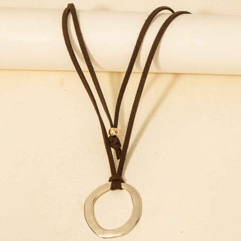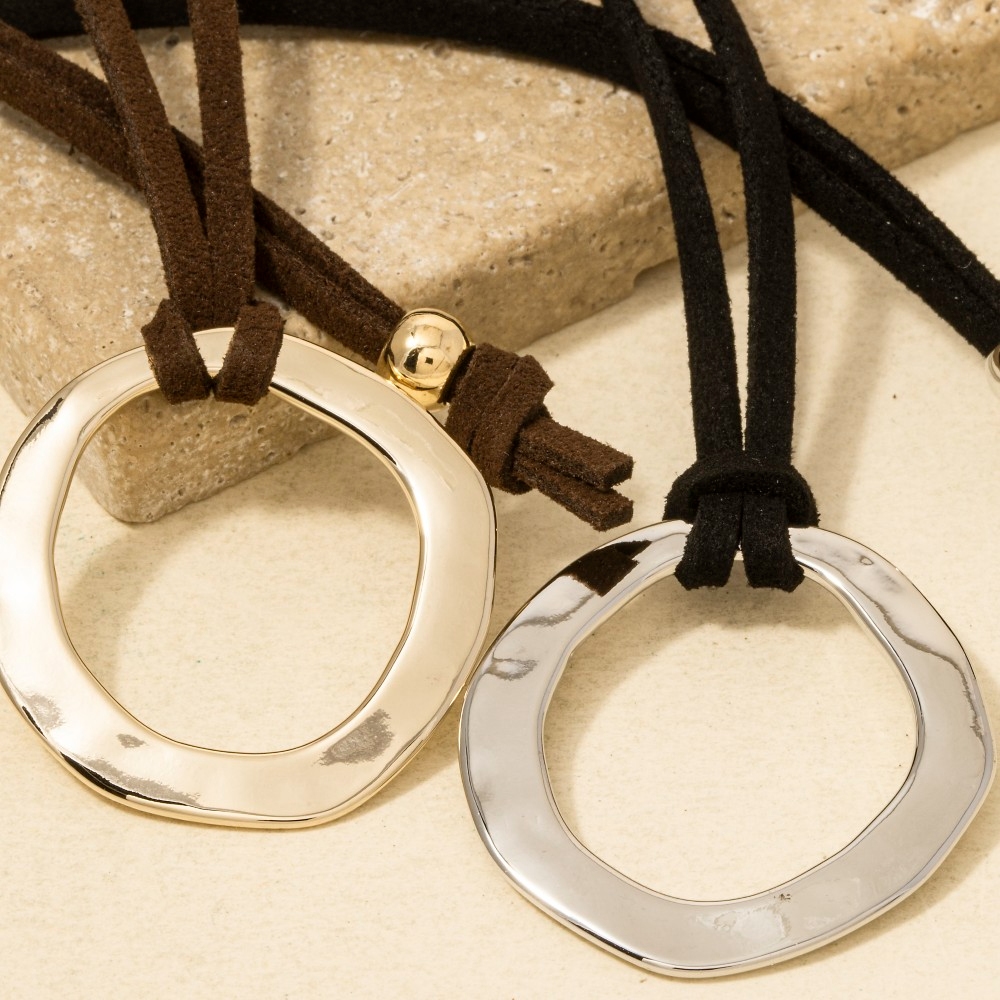 • A contemporary masterpiece, this necklace exudes a refined hammered hoop faux suede cord design. This item is perfect for anyone who loves to accessorize and add some personality to their outfits. Available in G, S. This item is sold in packs of 1.