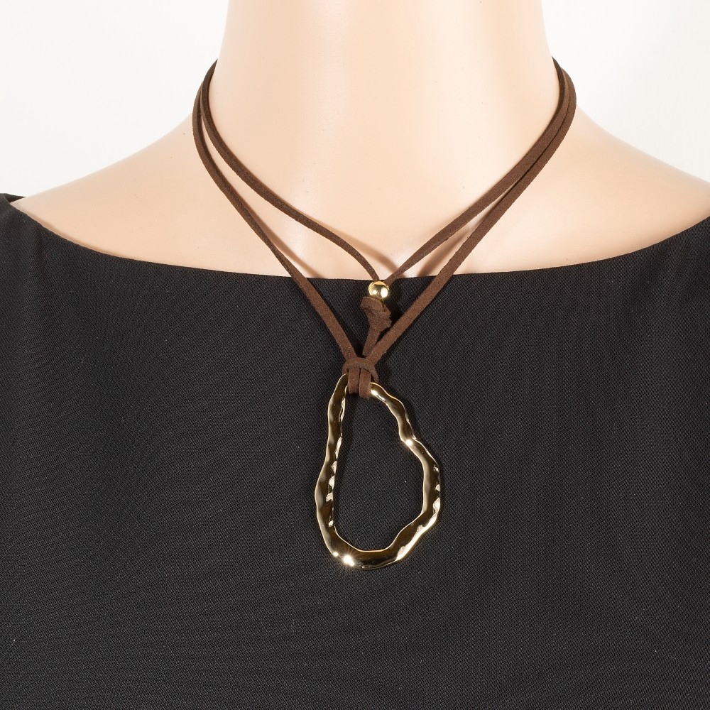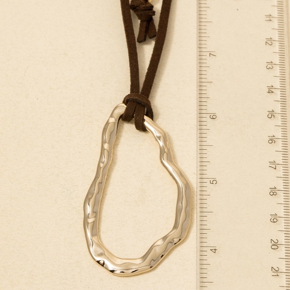 - A piece that will never go out of style, this necklace emanates an elegant hammered warped oval faux suede cord design. A perfect addition to your wardrobe that effortlessly enhances your style. Available in G, S. This item is sold in packs of 1.