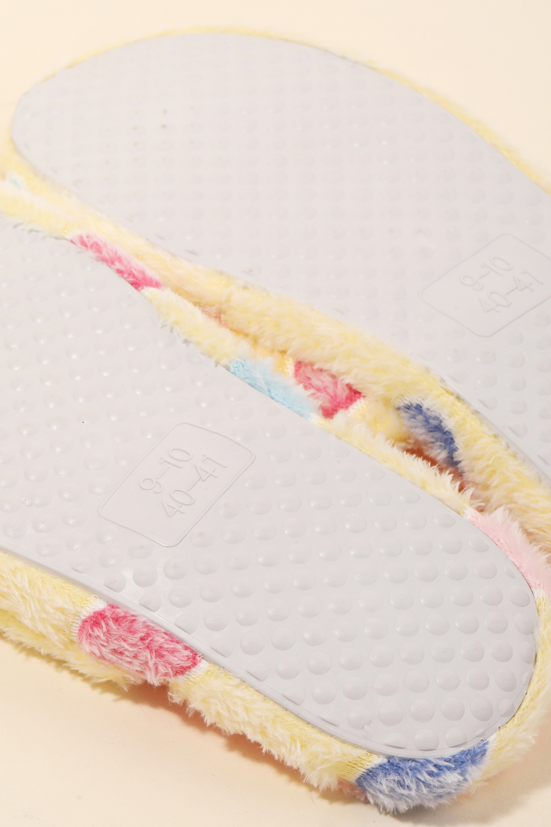 • The perfect way to showcase your unique style, this pair of slippers comes with a special heart pattern faux fur slippers design. Infuse elegance into your daily wardrobe with the versatile charm of this must-have pair of slippers. Available in YEL, YEM, YES. This item is sold in packs of 1.