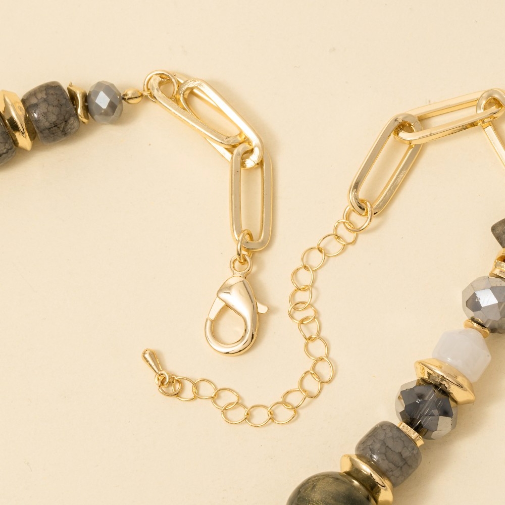 • This necklace is made with 75% Semi Precious Stone 20% Faceted Glass 5% Basemetal Casting.