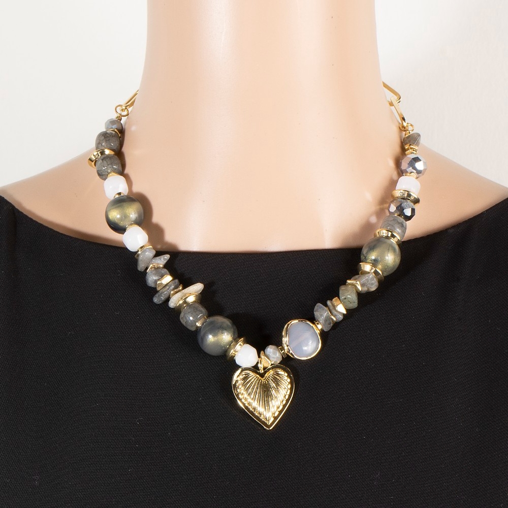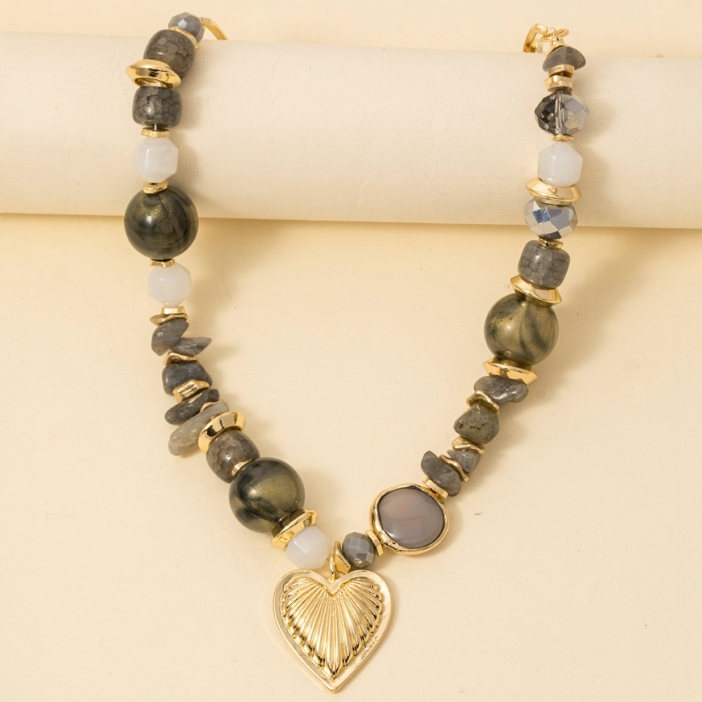 • This piece is perfect for those who want to showcase their unique style, this necklace flaunts a luxurious heart pendant mixed marble resin beaded design. Discover the magic of accessorizing with this versatile necklace, effortlessly upgrading the style quotient of any outfit. Available in GY, TPZ. This item is sold in packs of 1.